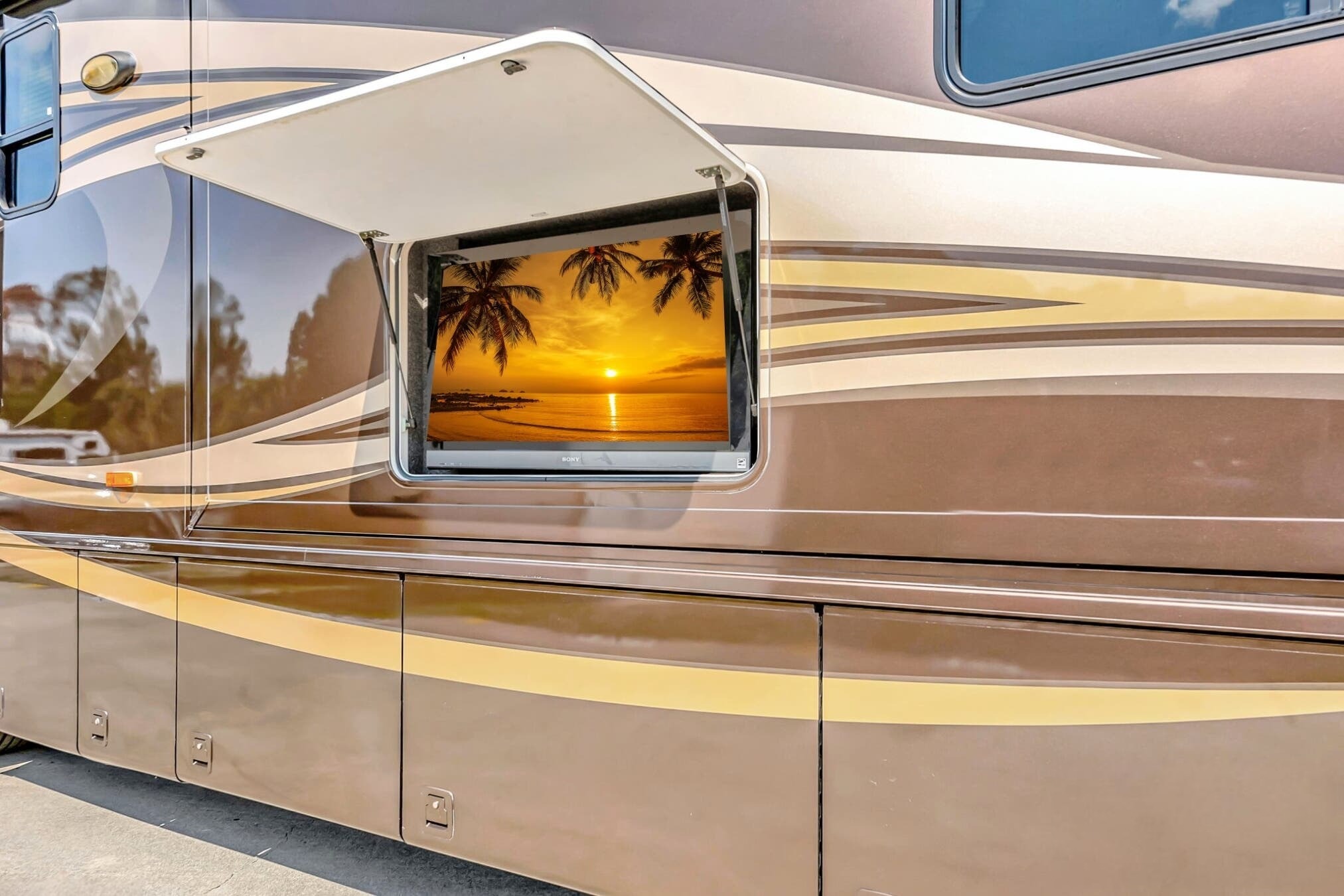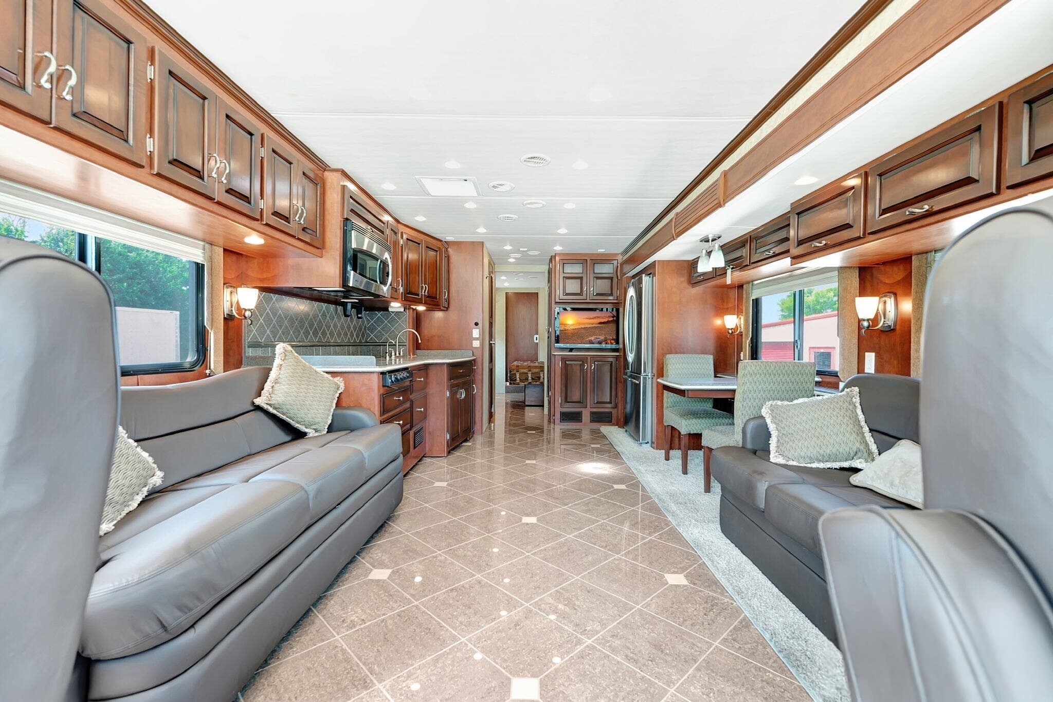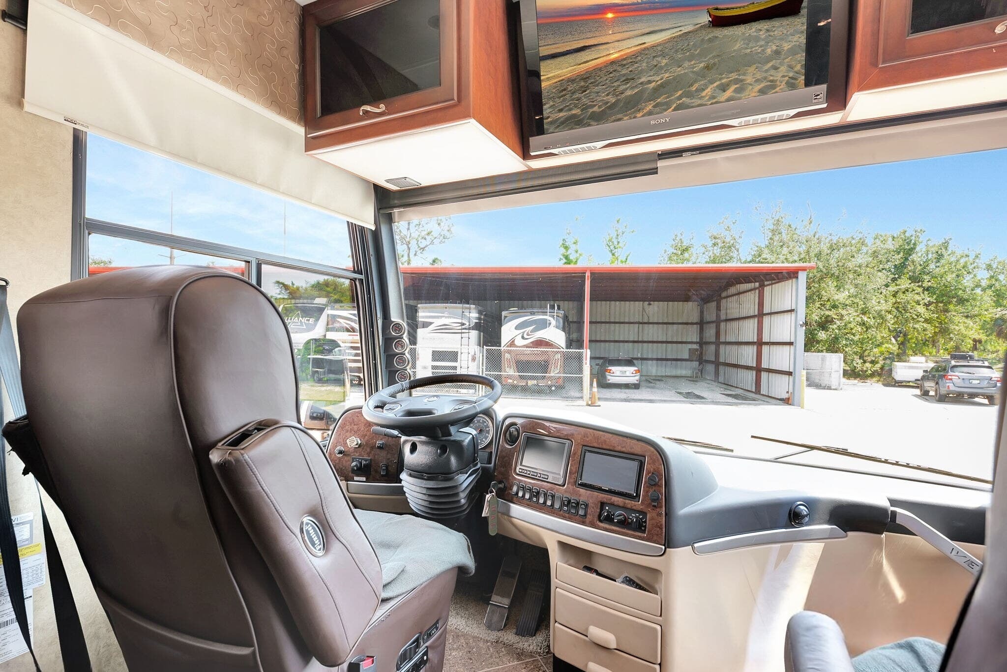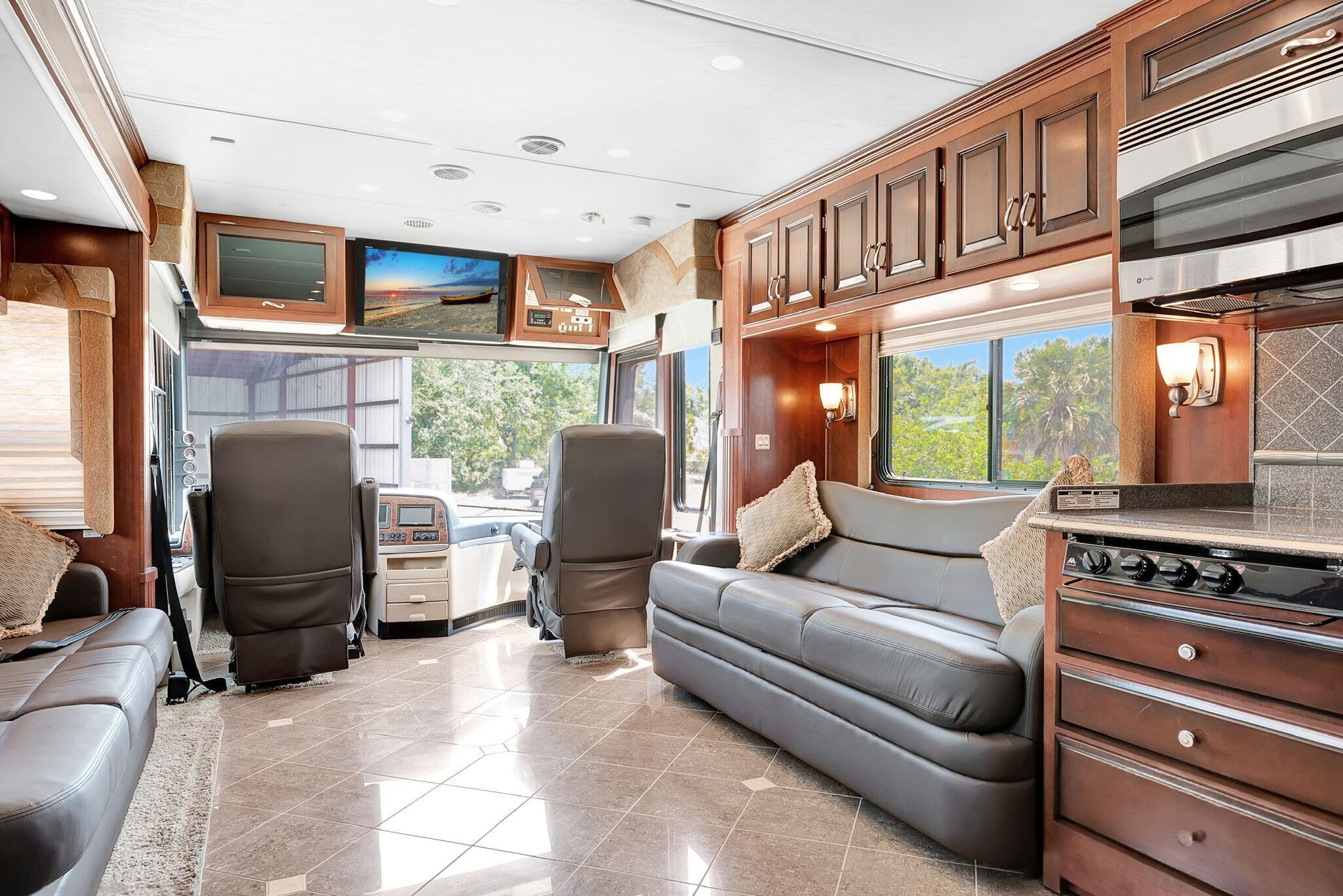 Backup Camera – Makes maneuvering and parking this large coach safer and more intuitive, especially for solo or first-time RV drivers.