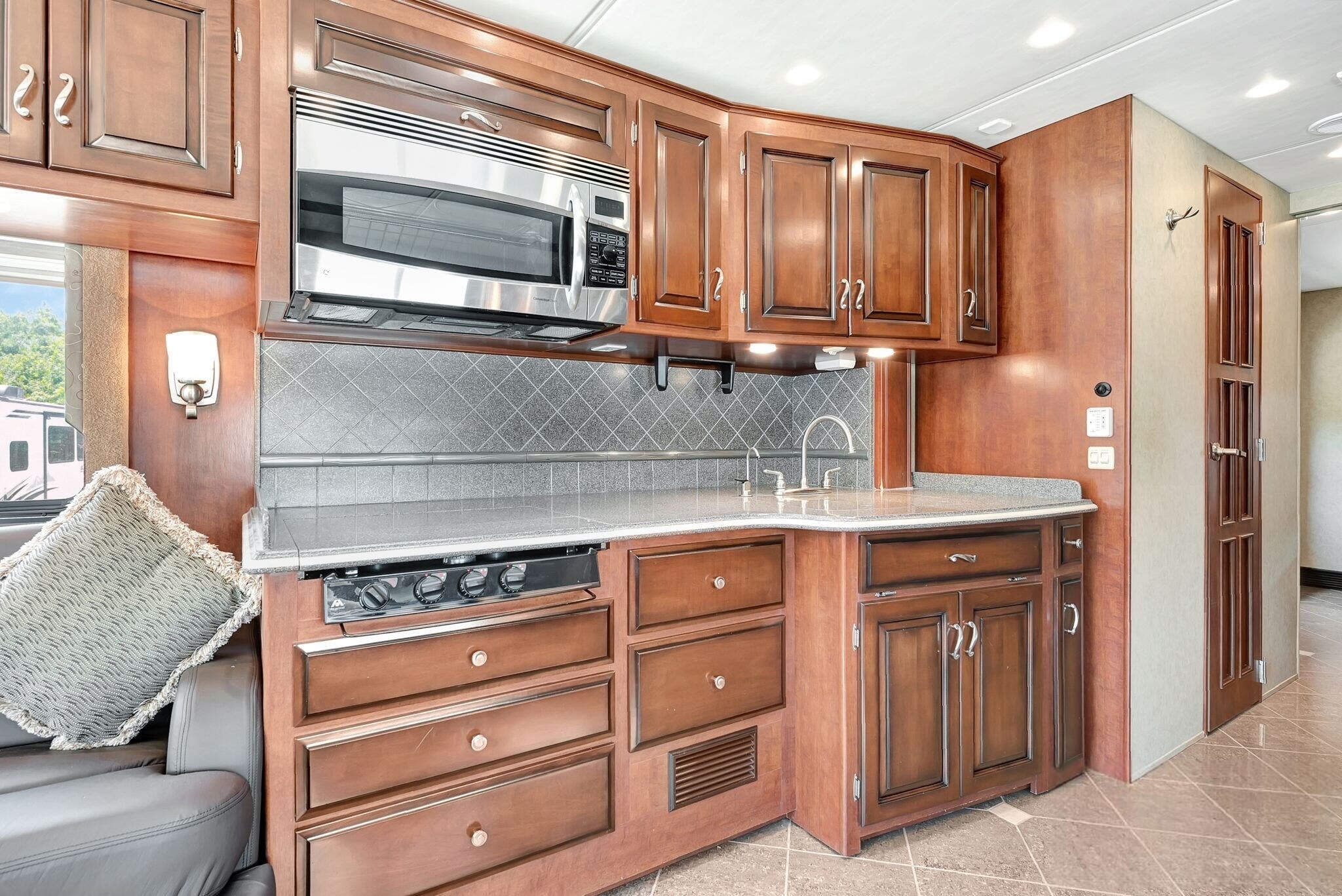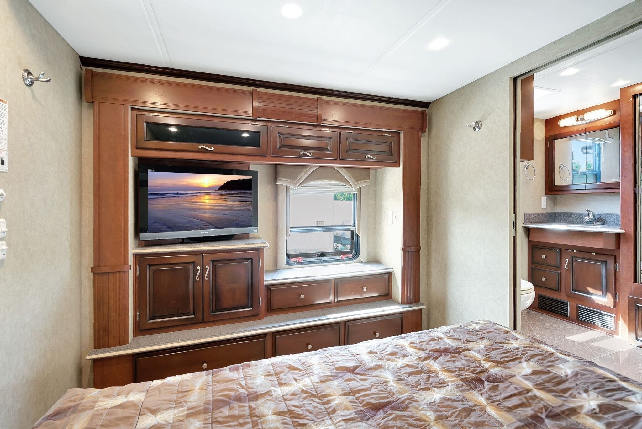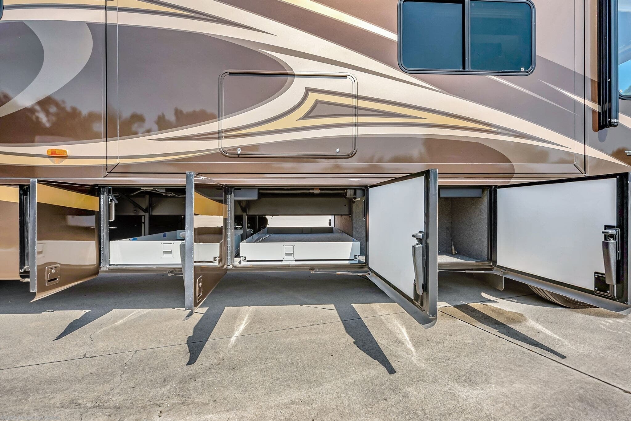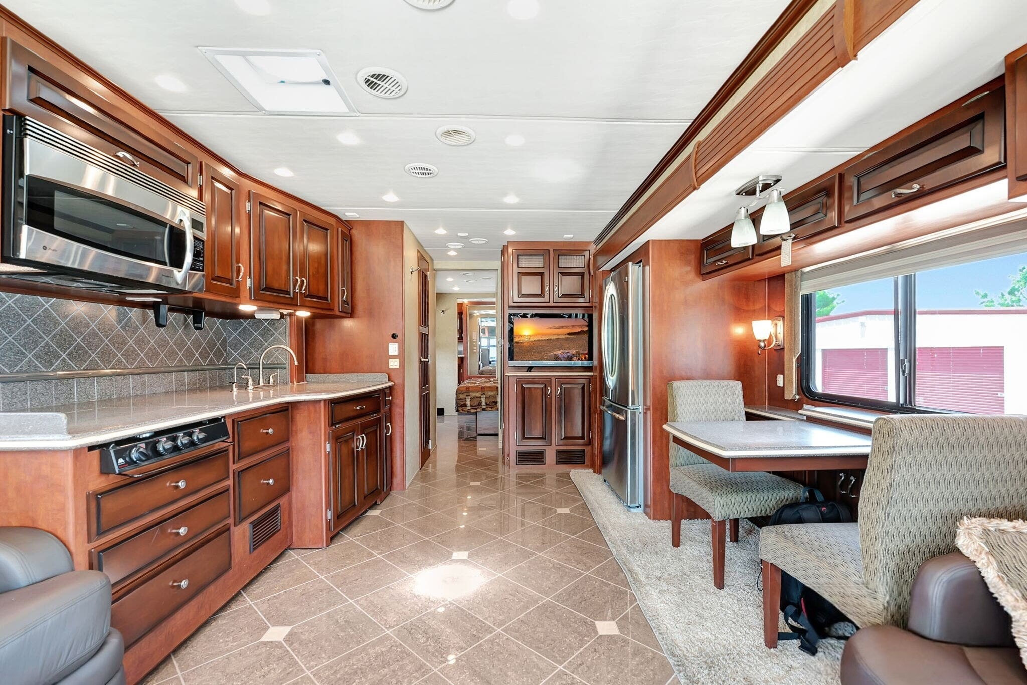 Backup Camera – Makes maneuvering and parking this large coach safer and more intuitive, especially for solo or first-time RV drivers.
