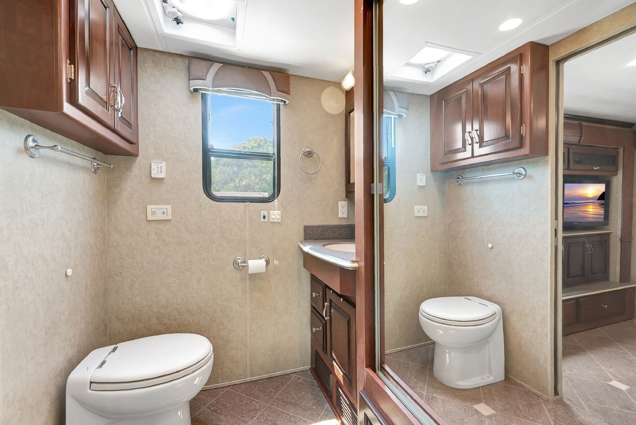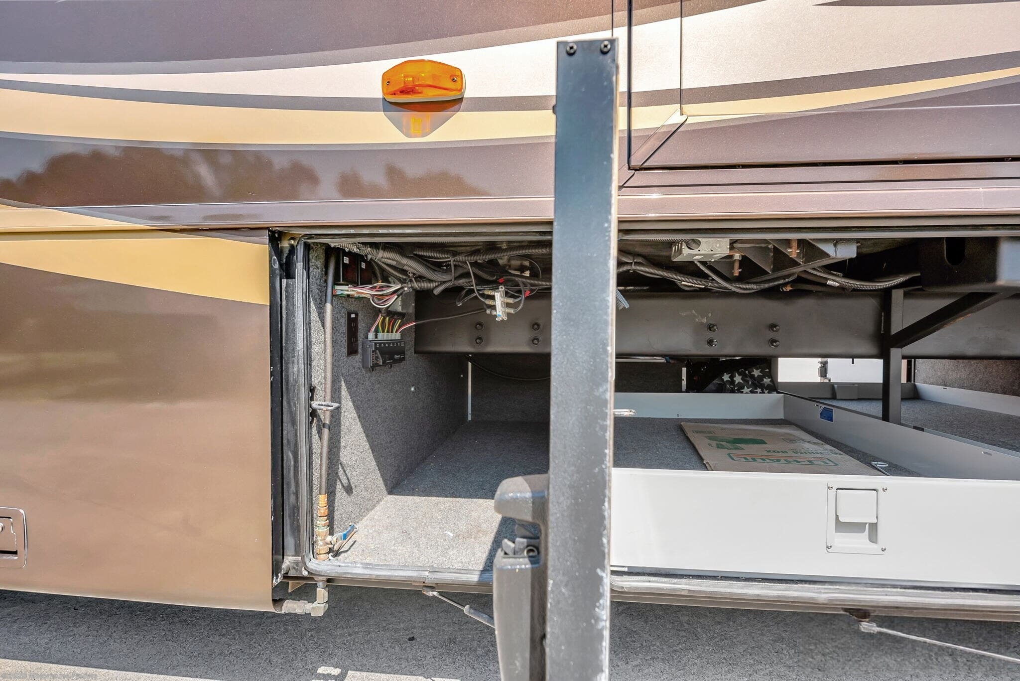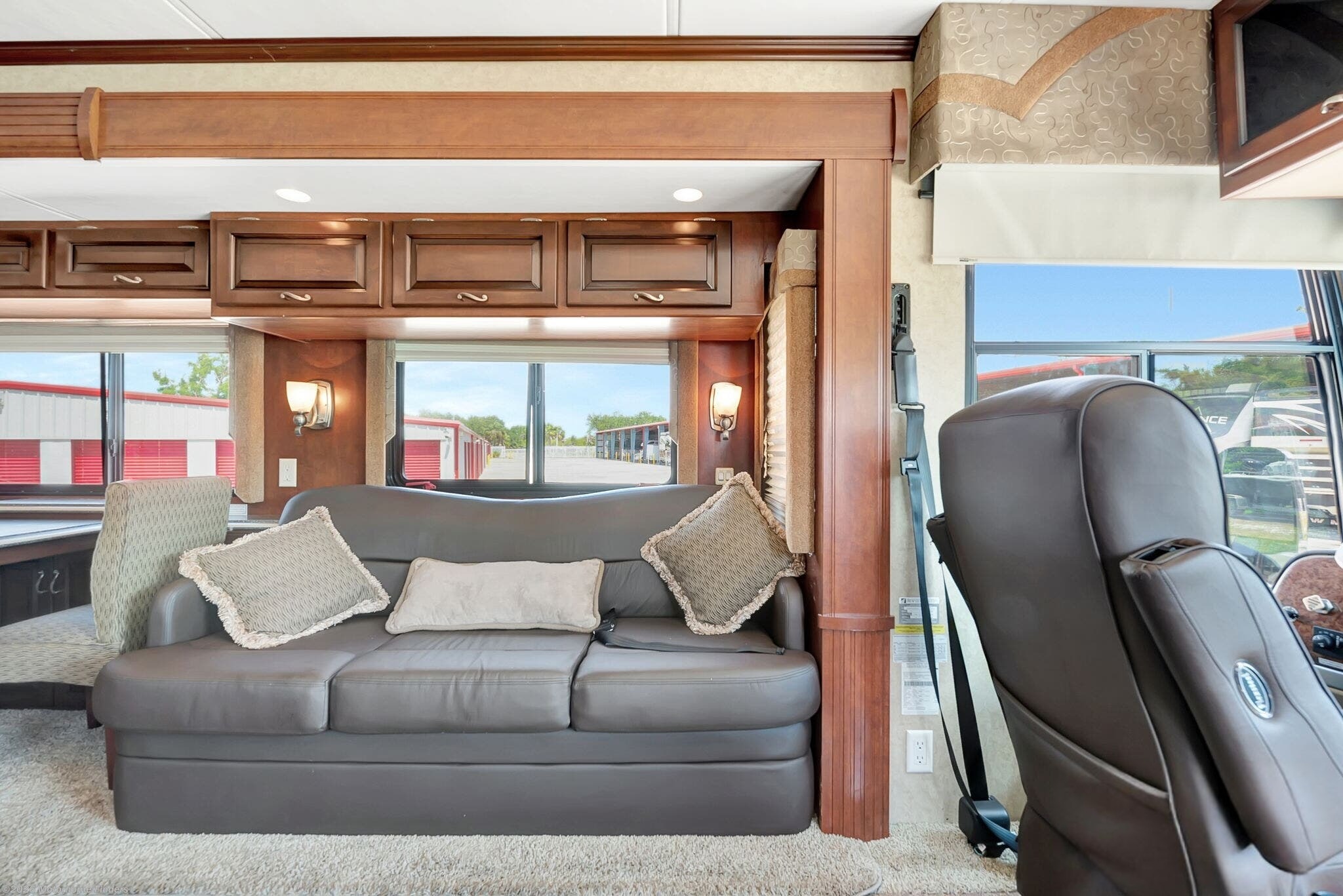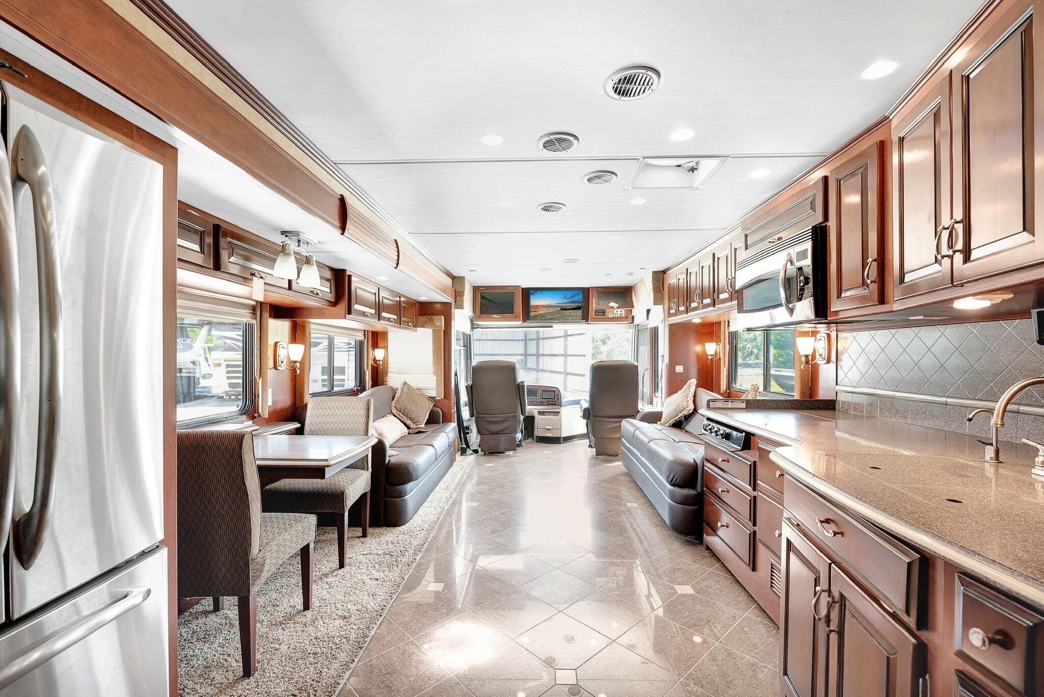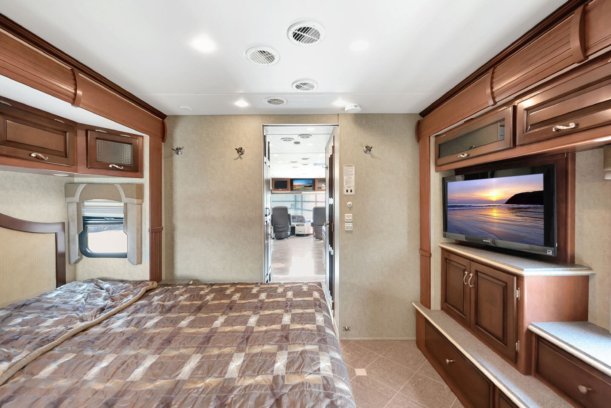 Backup Camera – Makes maneuvering and parking this large coach safer and more intuitive, especially for solo or first-time RV drivers.