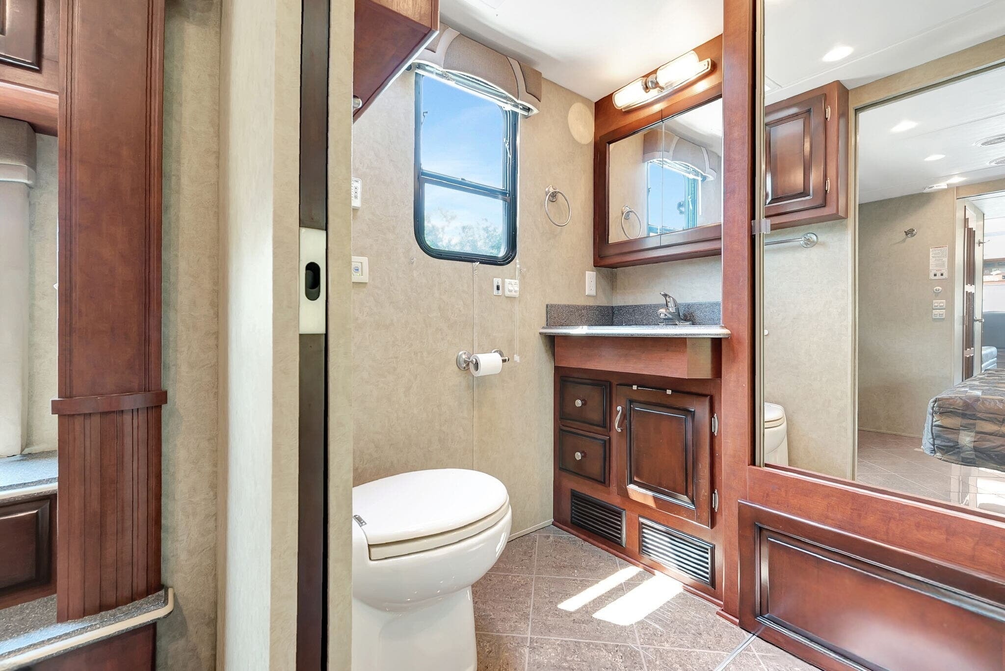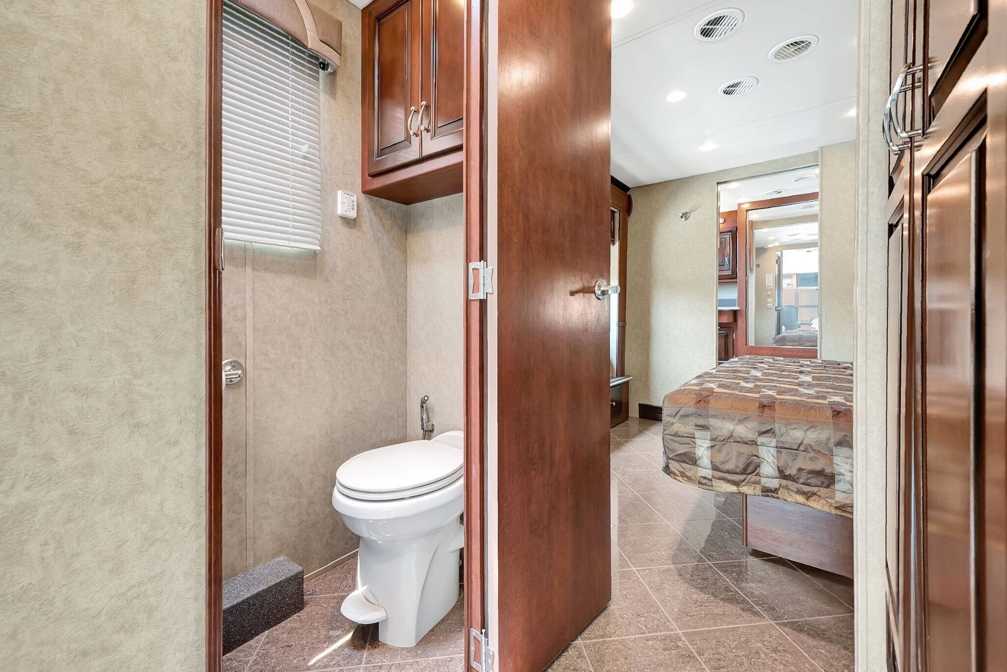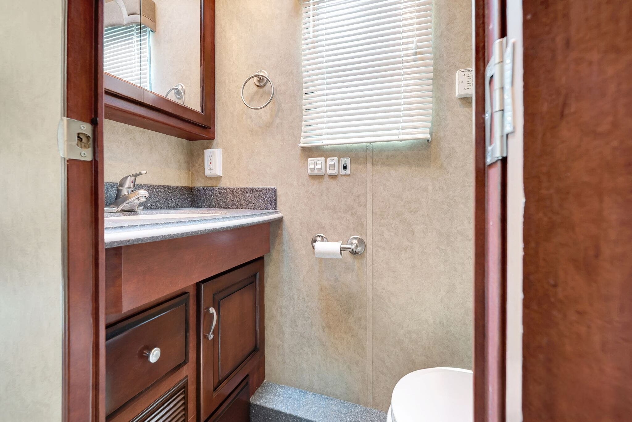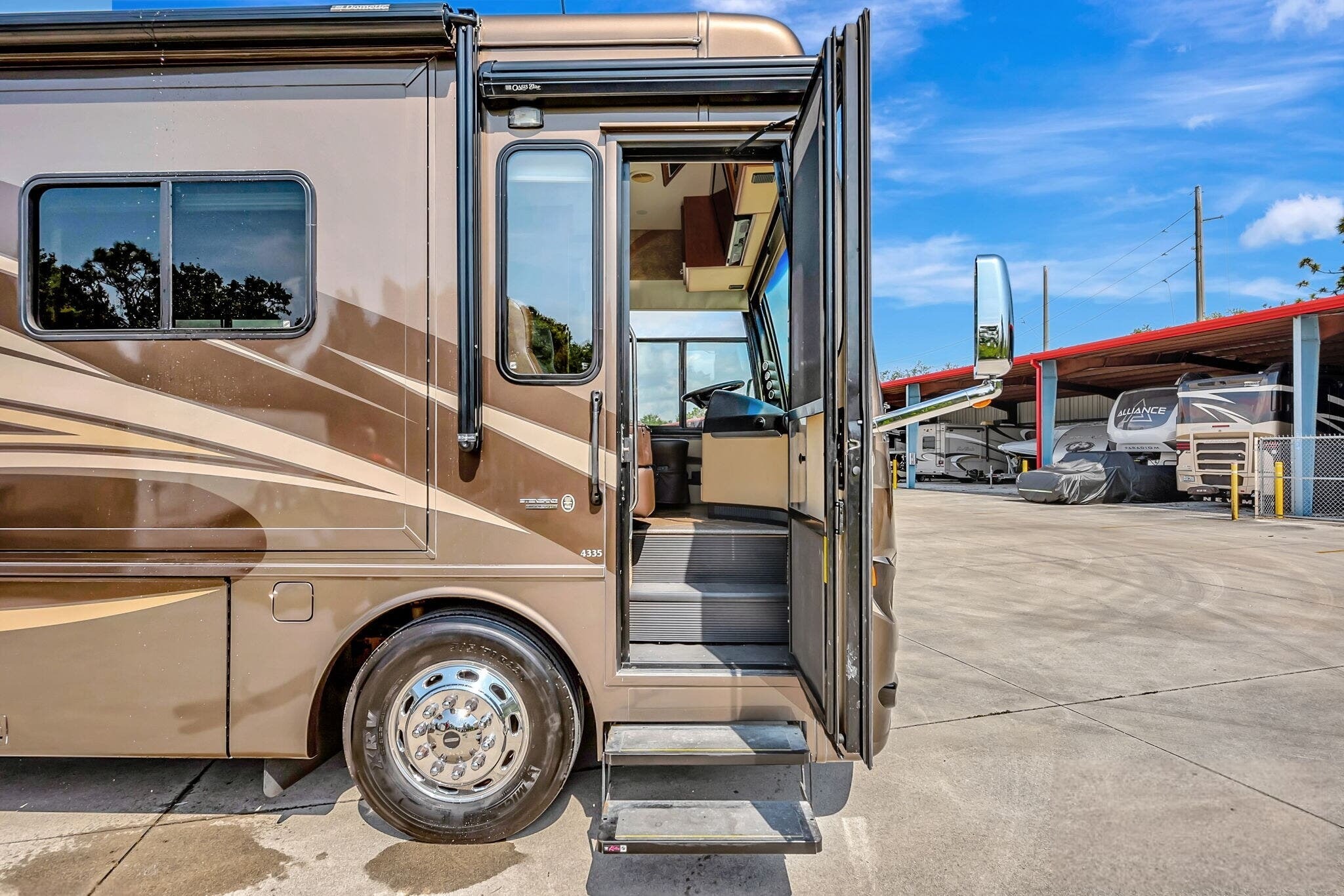 Backup Camera – Makes maneuvering and parking this large coach safer and more intuitive, especially for solo or first-time RV drivers.