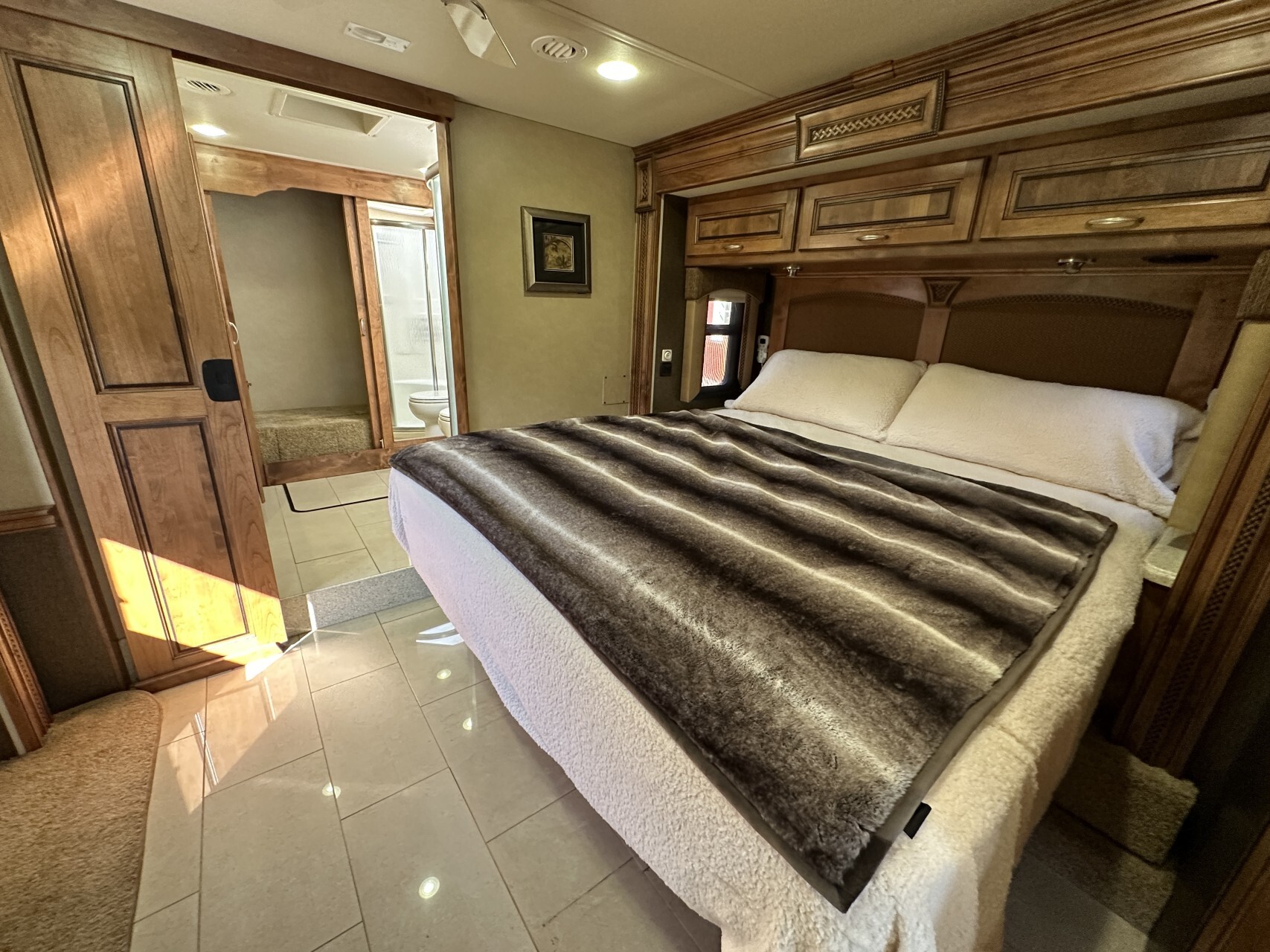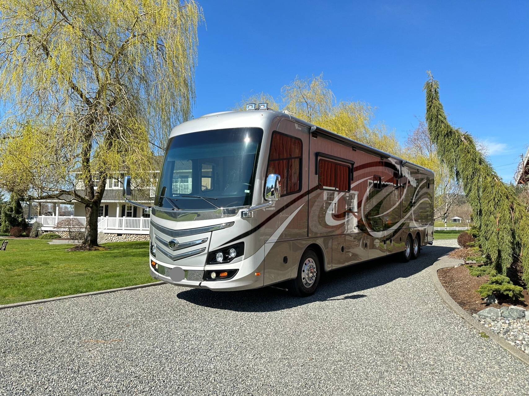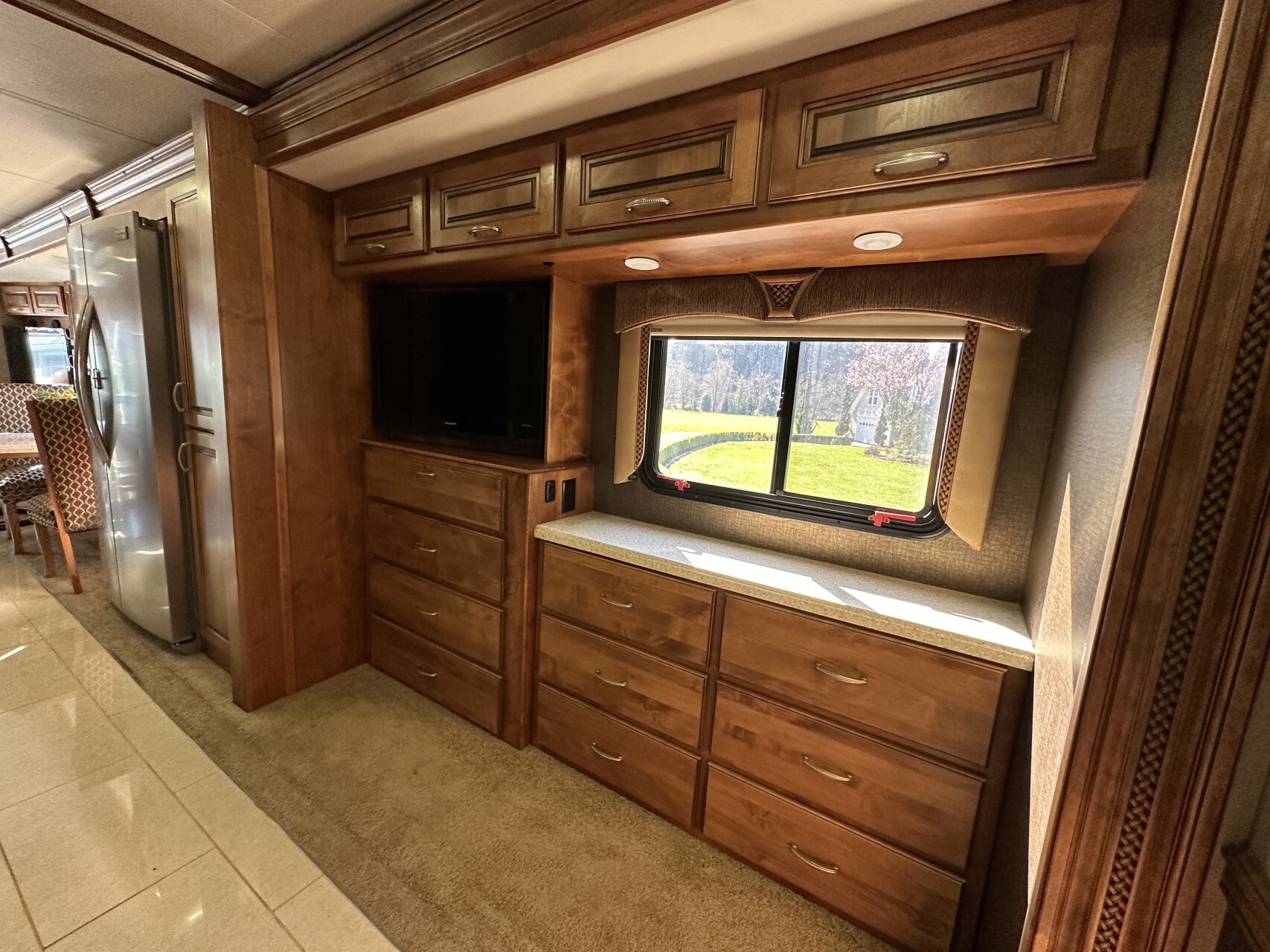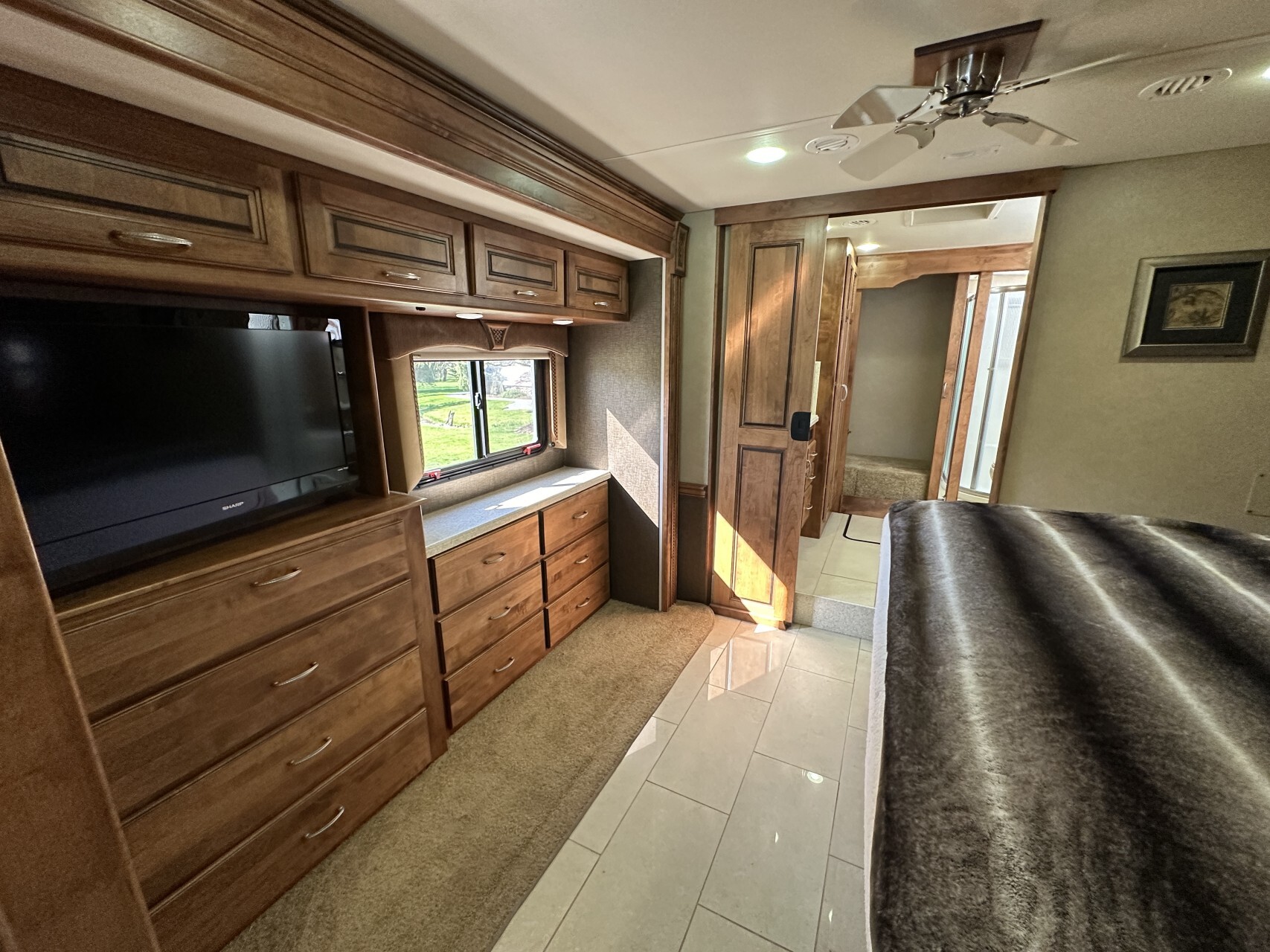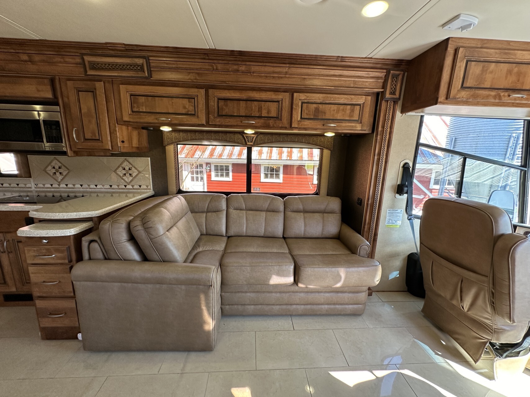 2013 Monaco Diplomat 43RFT with only 15k original miles. One owner. With the distinctive styling of a Monaco Coach, a powerful 405 hp engine and the best ride in the industry, the Diplomat offers the finest in residential living. Very clean and unabused condition. Would make for a great cross-country coach or luxury living on your dream property. Great configuration with the aft master suite and separate bathroom. Forward pull-out sofa gives extra sleeping arrangements for guests. Cozy living room equipped with an electric fireplace, recliner and extendable sofa. Stainless steel appliances, residential refrigerator, 2-burner induction cooktop, 1-1/2 bath floorplan configuration, stackable washer and dryer, tile flooring, Quiet Cool roof air conditioners with heat pumps and Aquahot 400 Hydronic heating system, exterior entertainment center with 42 inch LCD TV, automatic hydraulic leveling system and a Cummins Onan generator. The Roadmaster Chassis was built to deliver the very best diesel motorhome experience. Roadmaster construction utilizes advanced design and engineering, along with its eight outboard-mounted air bags and shock absorbers, to distribute stress evenly throughout the entire chassis, reducing the possibility of twisting and increasing durability and reliability. It's the ultimate foundation for a luxury ride. The MaxxForce 10 design grew from a big idea: bring to the mid-range diesel market traditional big bore features like wet-sleeve design and in-chassis rebuild capability. This model, which brings increased 9.3-liter displacement by longer stroke, meets the requirements of more demanding applications. The high-output MaxxForce 10 offers these features plus the performance you would expect from larger heavy-duty engines in a weight-saving medium-duty package.