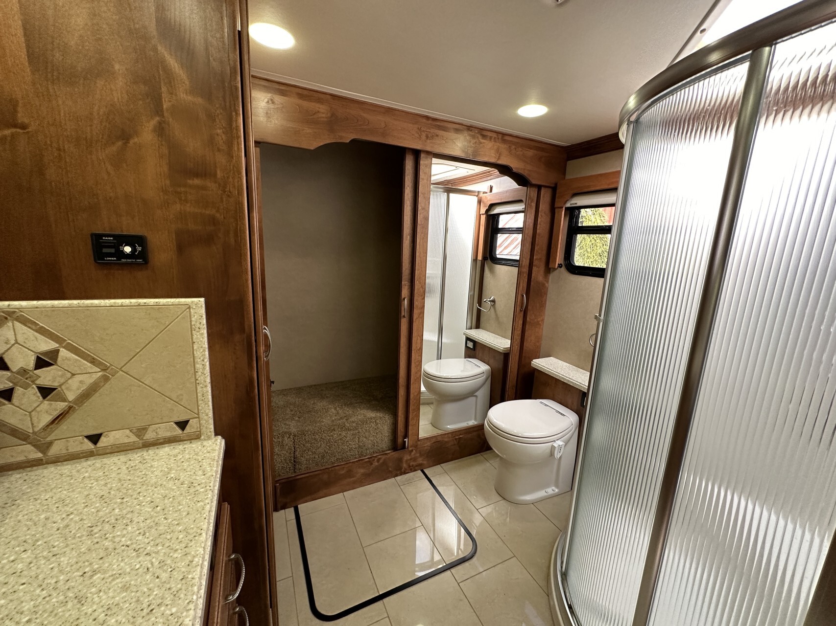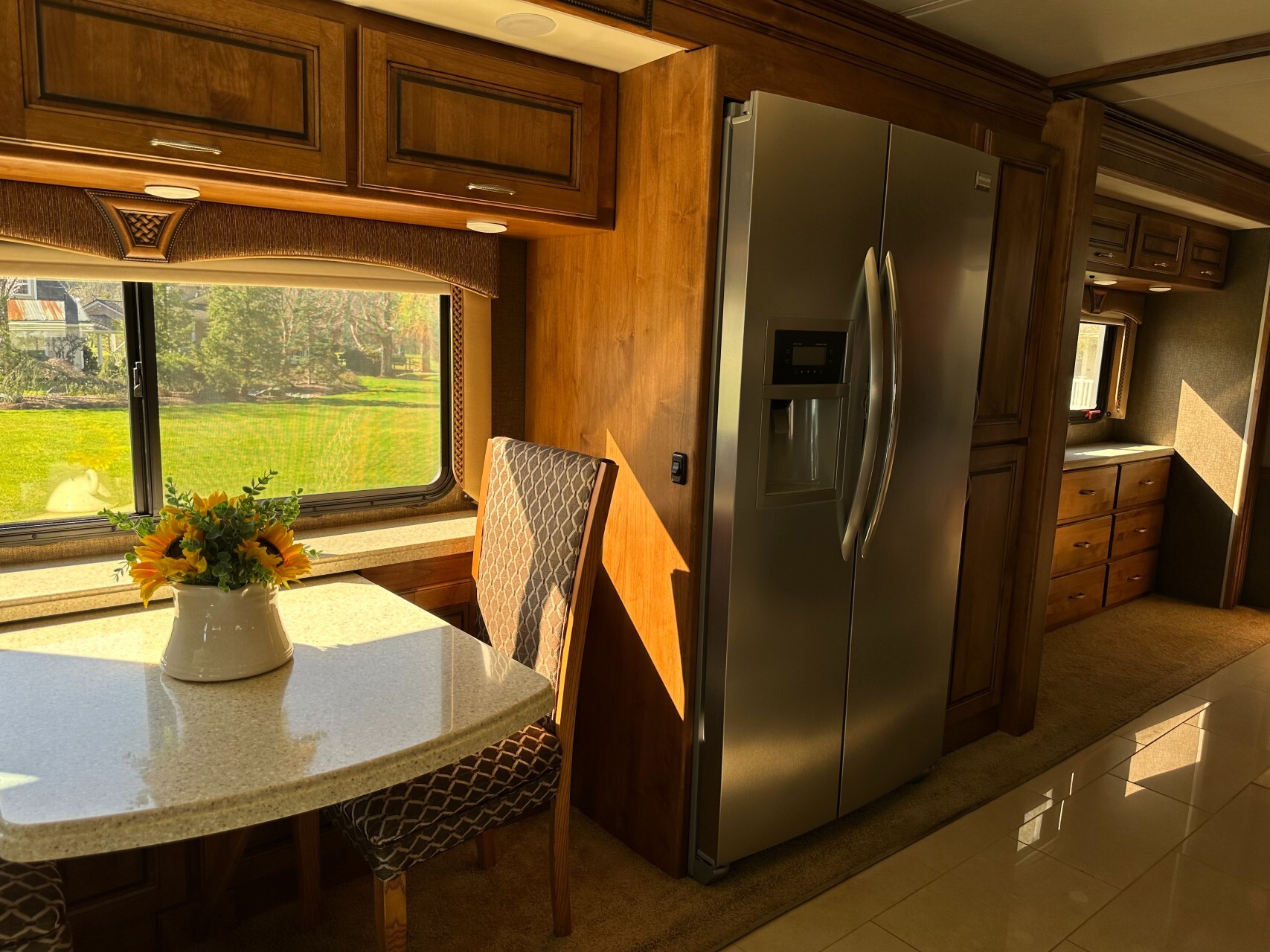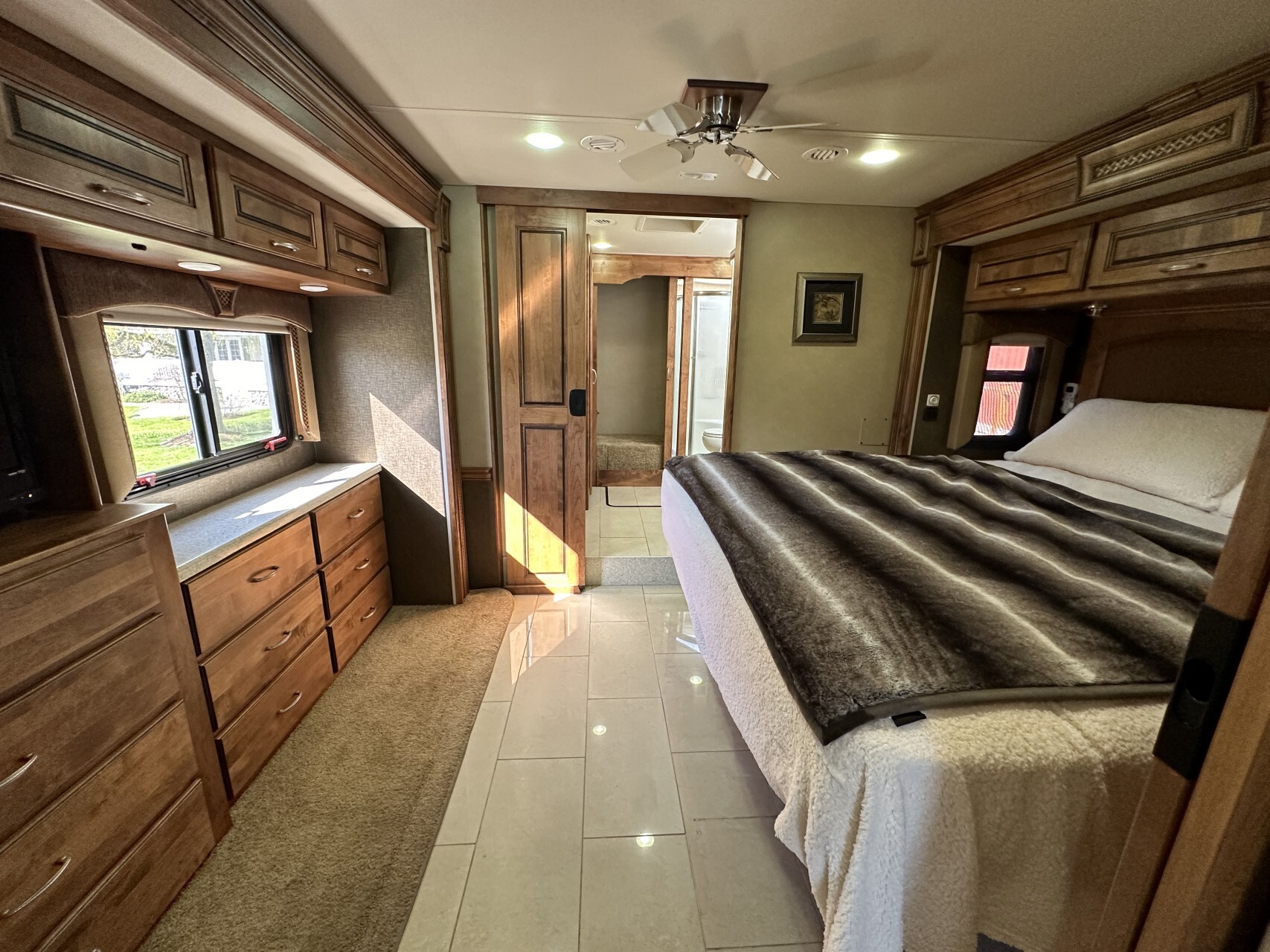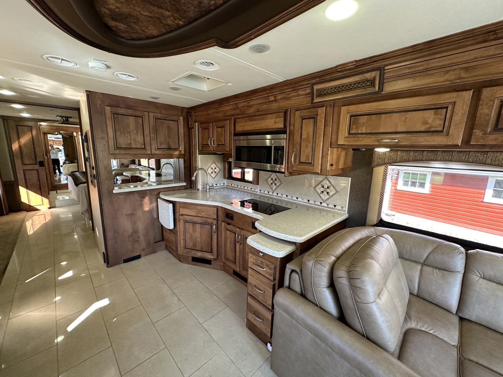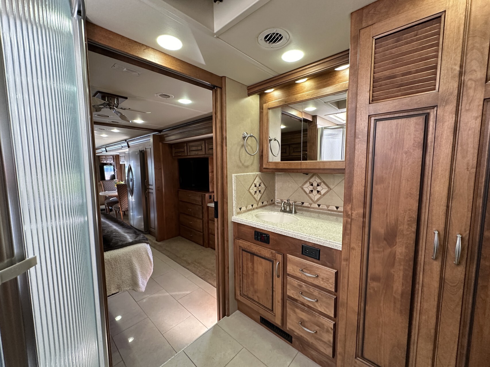 2013 Monaco Diplomat 43RFT with only 15k original miles. One owner. With the distinctive styling of a Monaco Coach, a powerful 405 hp engine and the best ride in the industry, the Diplomat offers the finest in residential living. Very clean and unabused condition. Would make for a great cross-country coach or luxury living on your dream property. Great configuration with the aft master suite and separate bathroom. Forward pull-out sofa gives extra sleeping arrangements for guests. Cozy living room equipped with an electric fireplace, recliner and extendable sofa. Stainless steel appliances, residential refrigerator, 2-burner induction cooktop, 1-1/2 bath floorplan configuration, stackable washer and dryer, tile flooring, Quiet Cool roof air conditioners with heat pumps and Aquahot 400 Hydronic heating system, exterior entertainment center with 42 inch LCD TV, automatic hydraulic leveling system and a Cummins Onan generator. The Roadmaster Chassis was built to deliver the very best diesel motorhome experience. Roadmaster construction utilizes advanced design and engineering, along with its eight outboard-mounted air bags and shock absorbers, to distribute stress evenly throughout the entire chassis, reducing the possibility of twisting and increasing durability and reliability. It's the ultimate foundation for a luxury ride. The MaxxForce 10 design grew from a big idea: bring to the mid-range diesel market traditional big bore features like wet-sleeve design and in-chassis rebuild capability. This model, which brings increased 9.3-liter displacement by longer stroke, meets the requirements of more demanding applications. The high-output MaxxForce 10 offers these features plus the performance you would expect from larger heavy-duty engines in a weight-saving medium-duty package.
