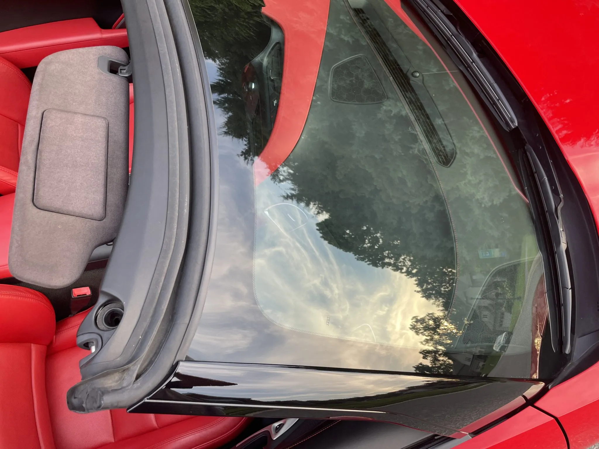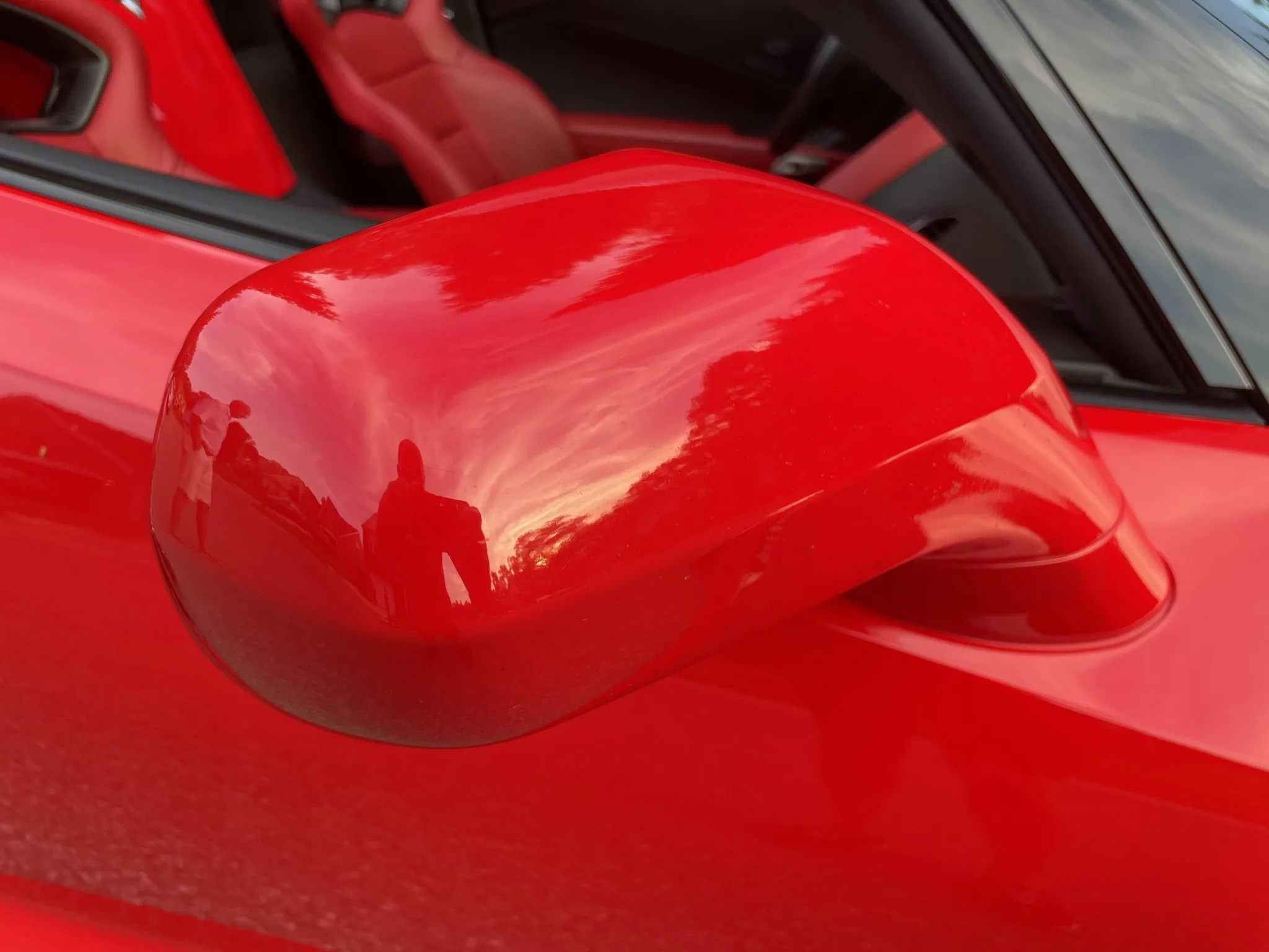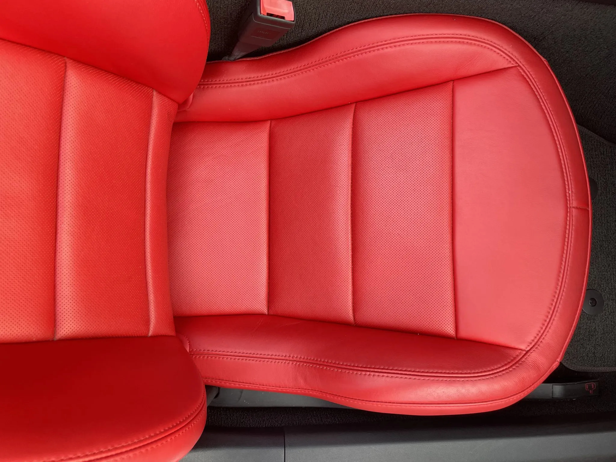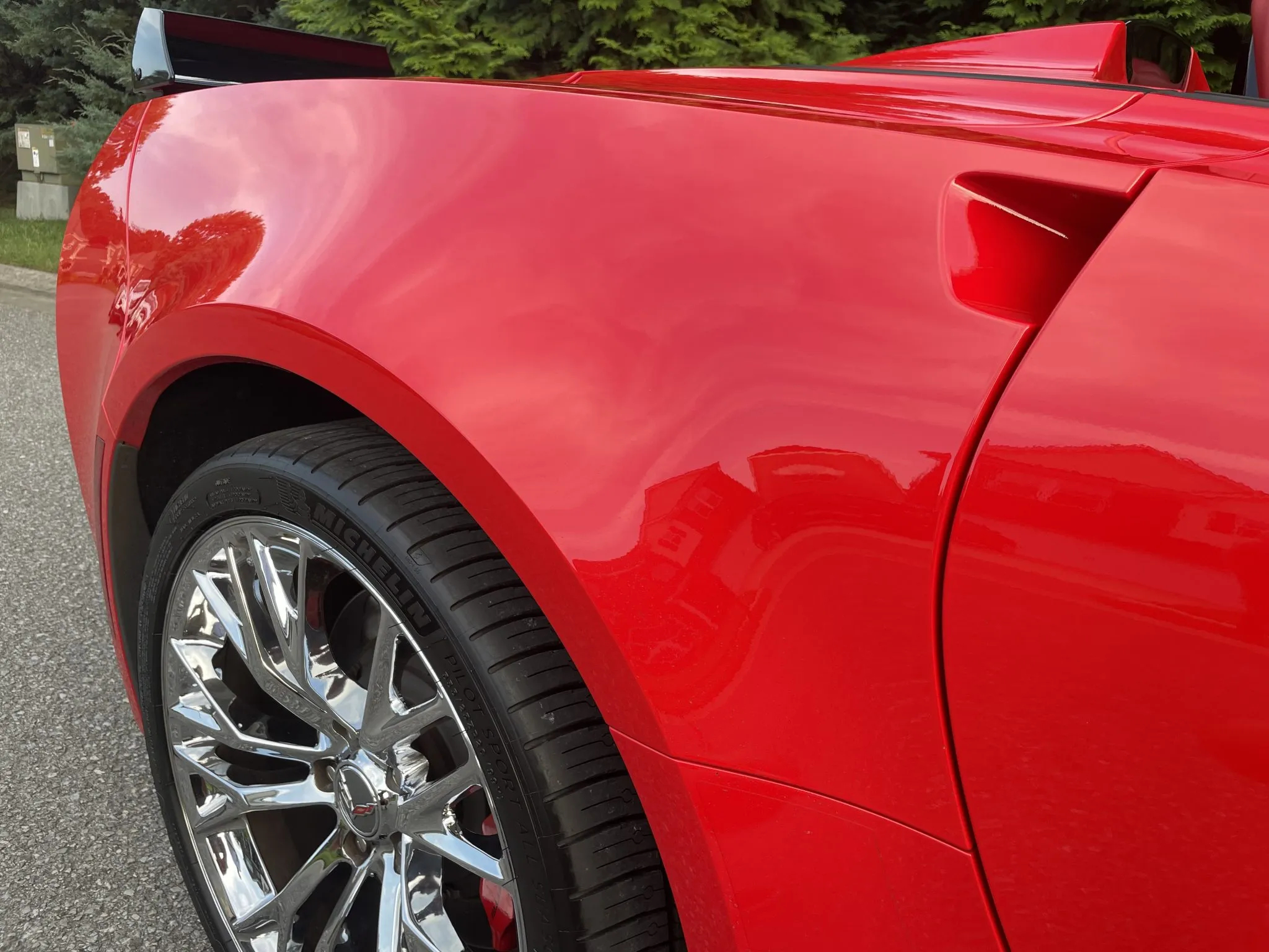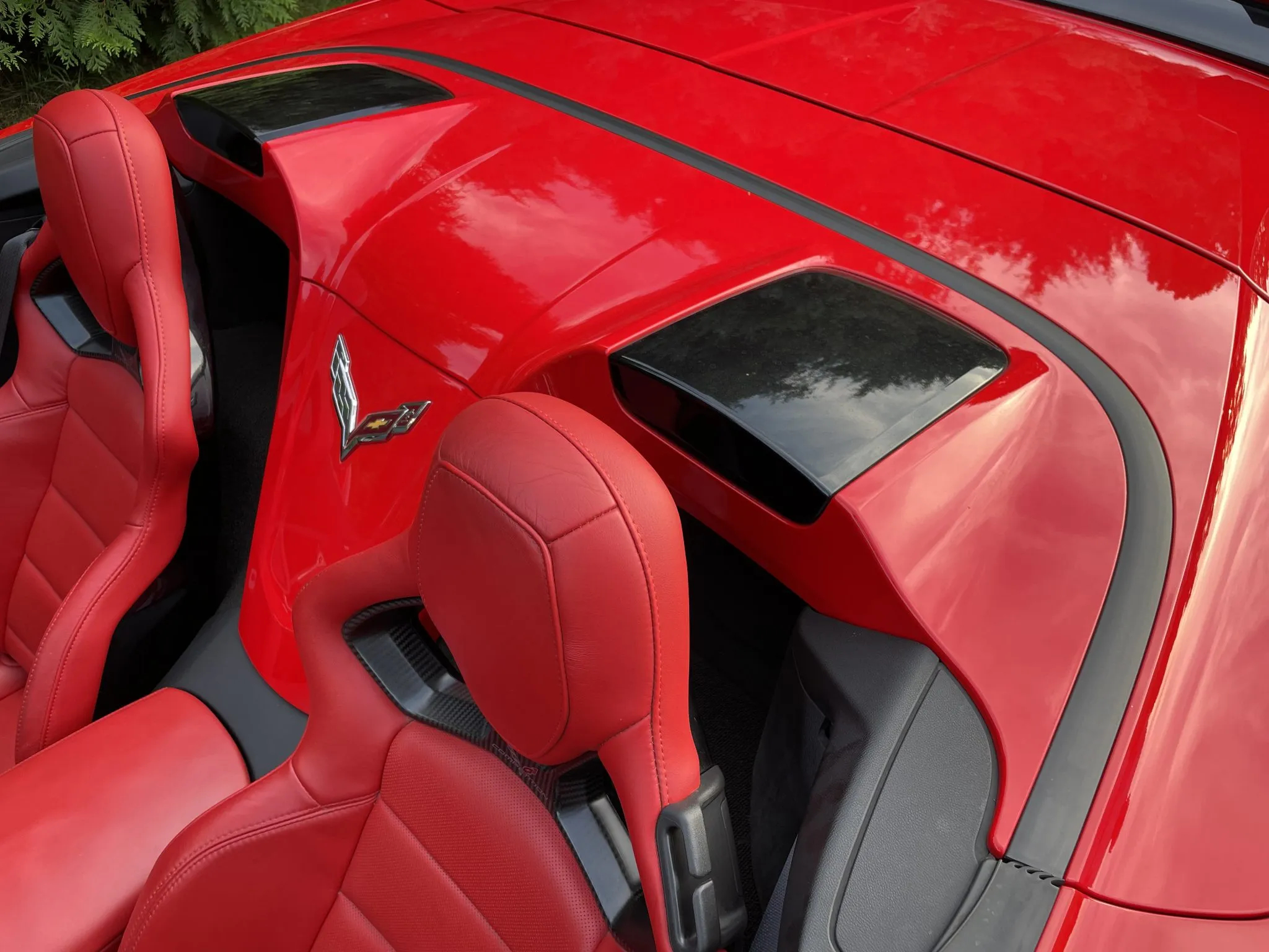 This 2015 Chevrolet Corvette Z06 convertible is powered by a supercharged 6.2-liter LT4 V8 linked with an eight-speed automatic gearbox and an electronic limited-slip differential, and it is finished in Torch Red over Adrenaline Red leather upholstery. Additional equipment includes the 3LZ Premium Equipment Group, 19″ and 20″ Z06 chrome aluminum wheels, Brembo brakes, Magnetic Ride Control, a black convertible soft top, xenon headlights, a rear spoiler, heated and ventilated Competition Sport bucket seats, a performance data recorder, navigation, a head-up display, and a Bose sound system. The car has 22,800 miles.