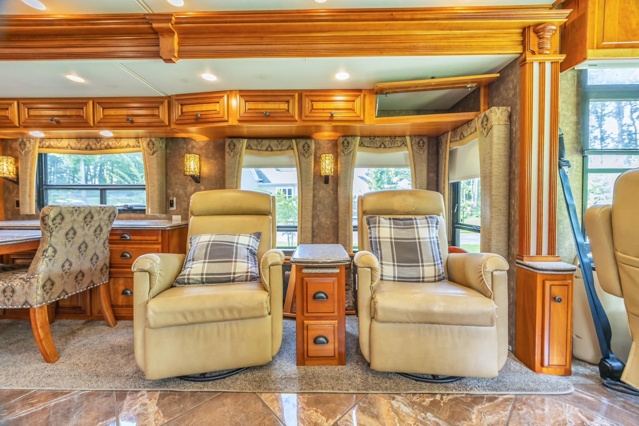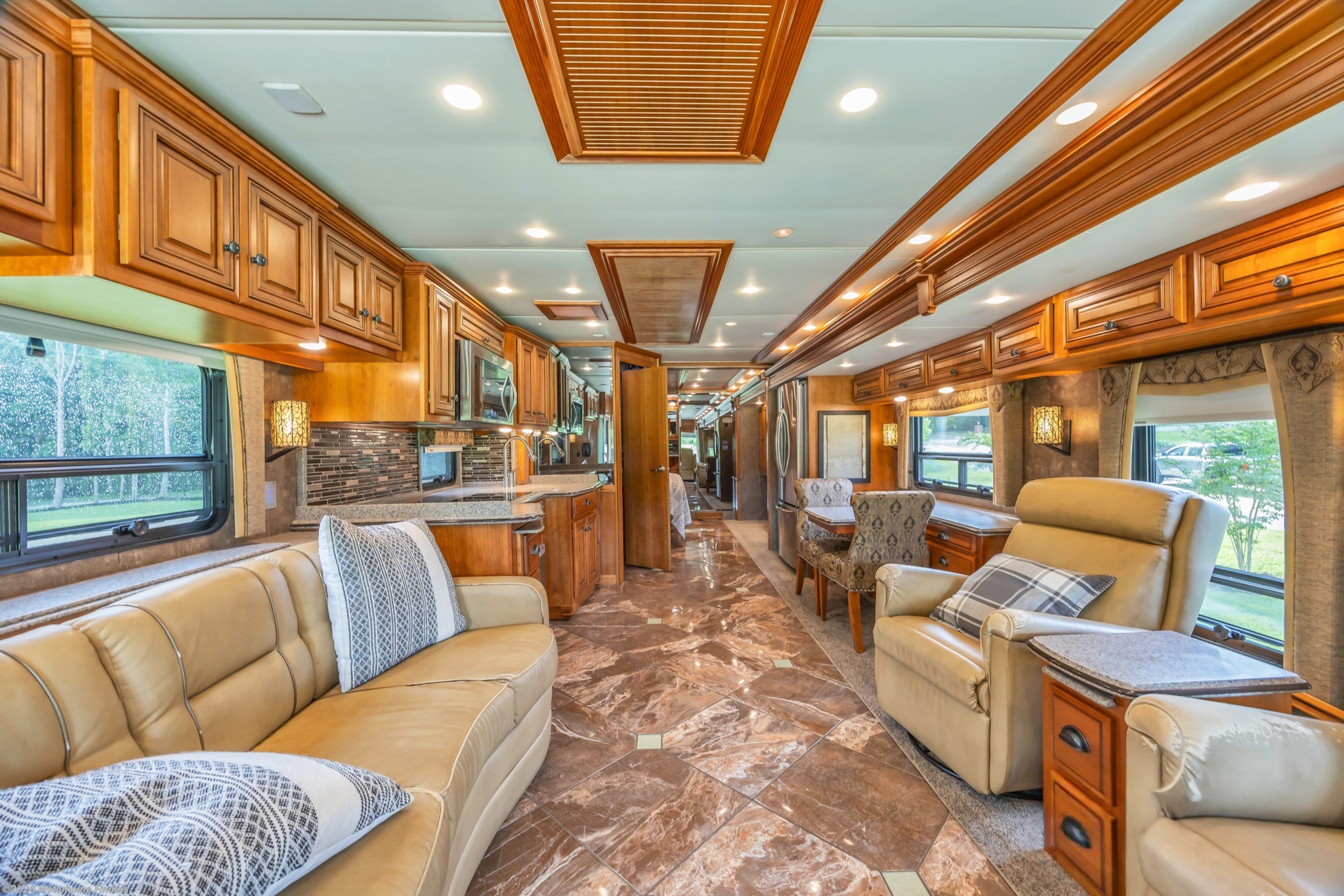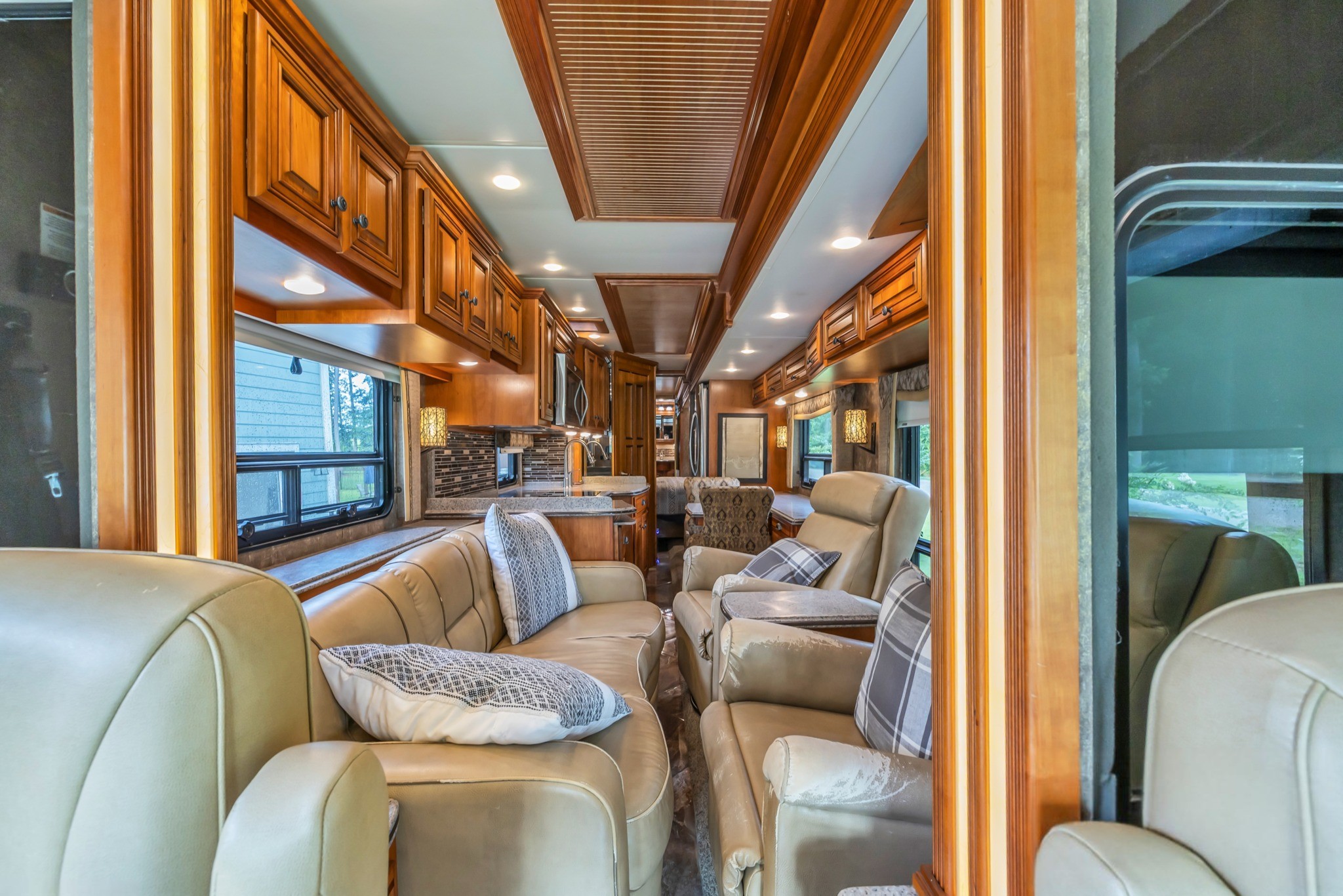Villa Ultralux Leather Seating – Power captain’s chairs (heated) and sofa/recliners for ultimate comfort.