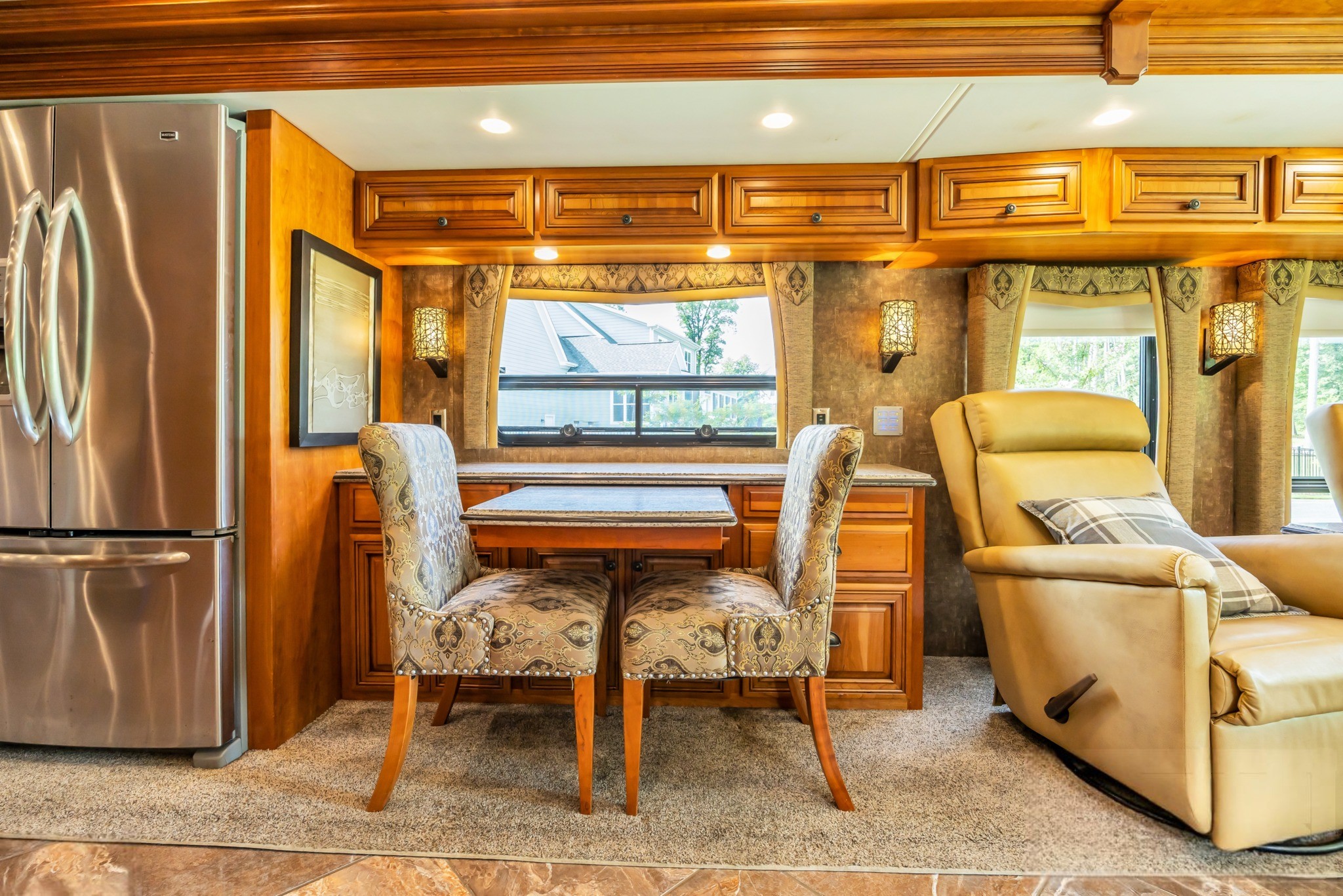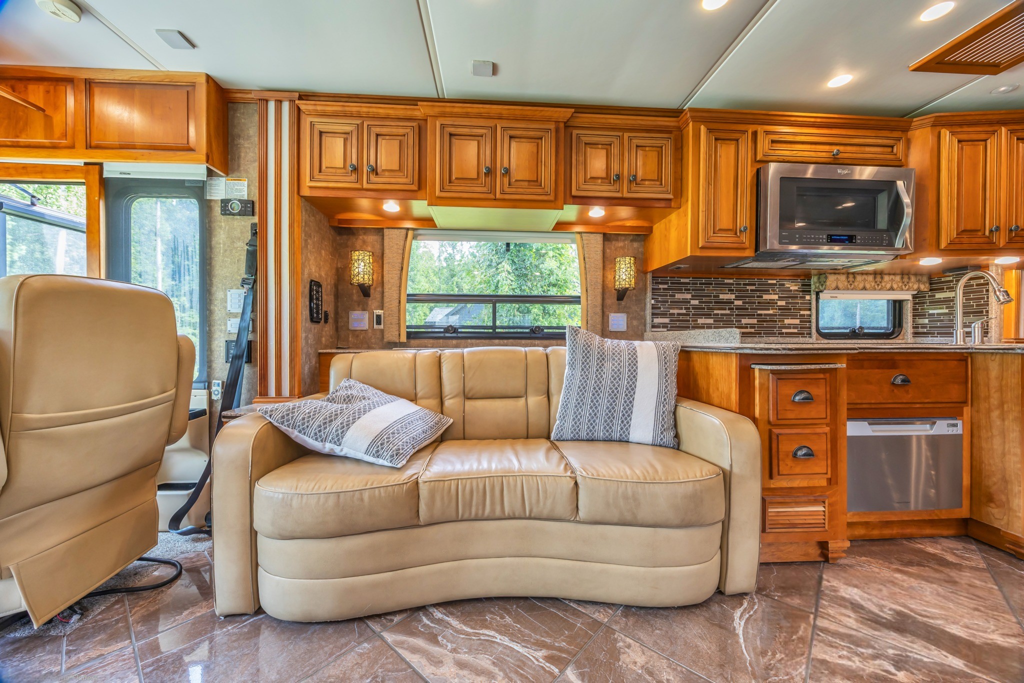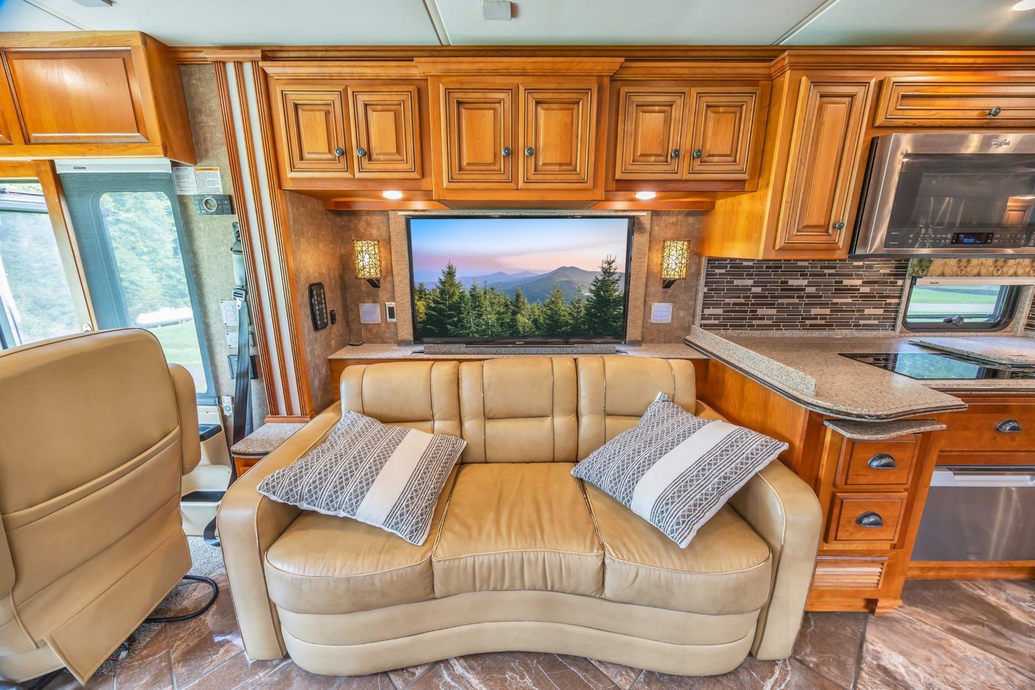 Villa Ultralux Leather Seating – Power captain’s chairs (heated) and sofa/recliners for ultimate comfort.