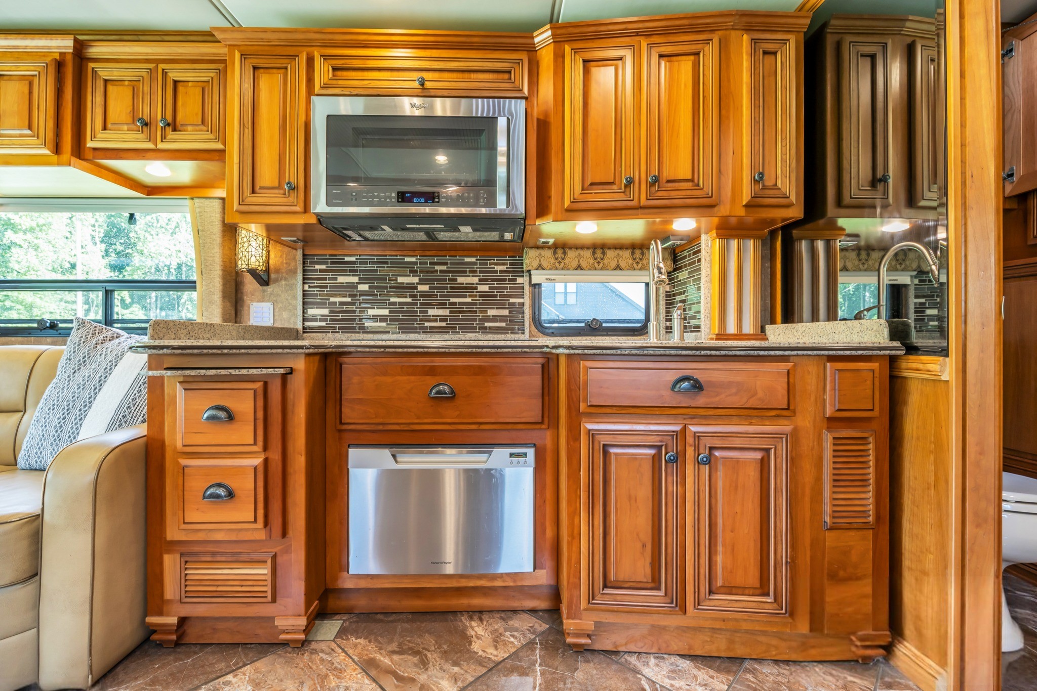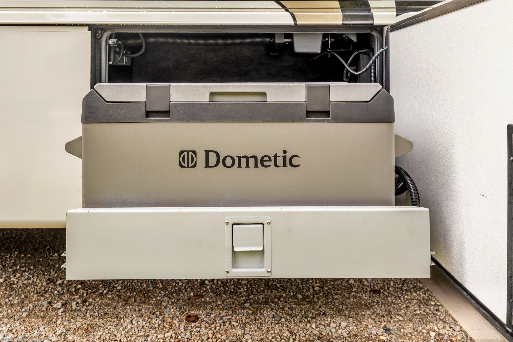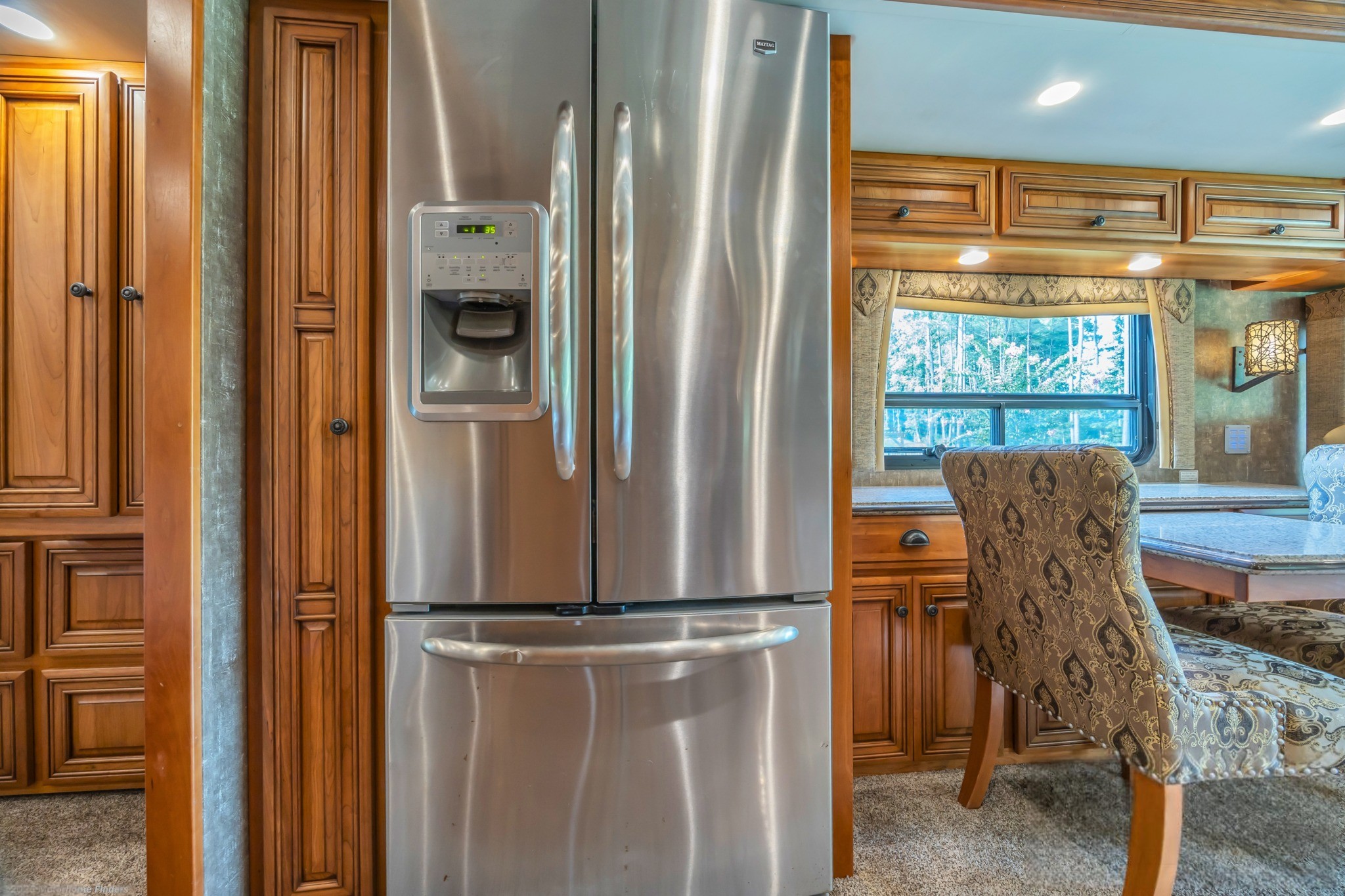 Residential Whirlpool Refrigerator + Dometic 2.8 Freezer on Slides – Ample cold storage for extended trips.