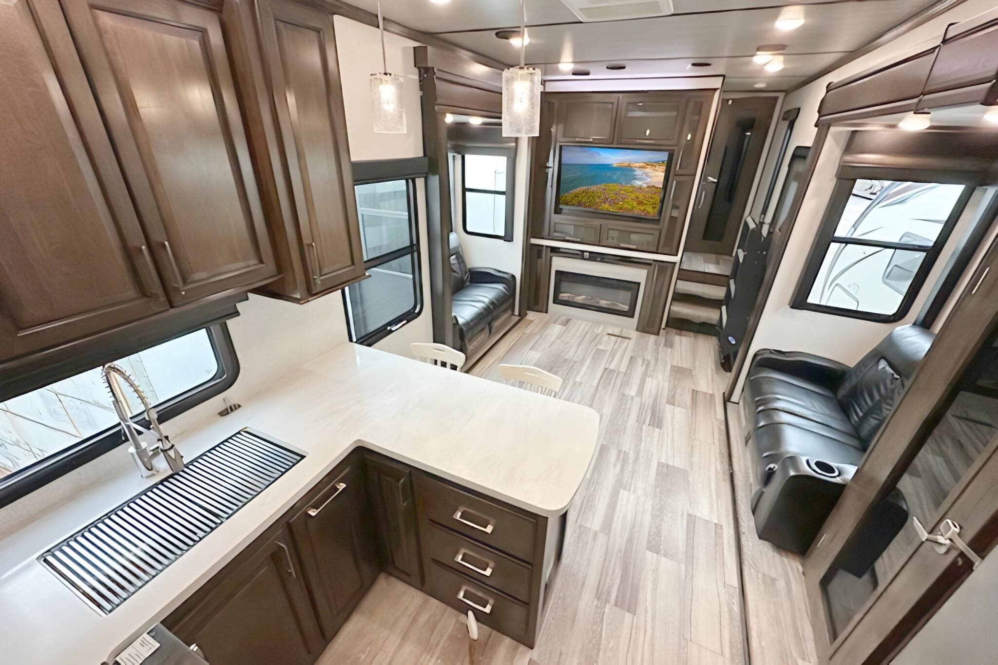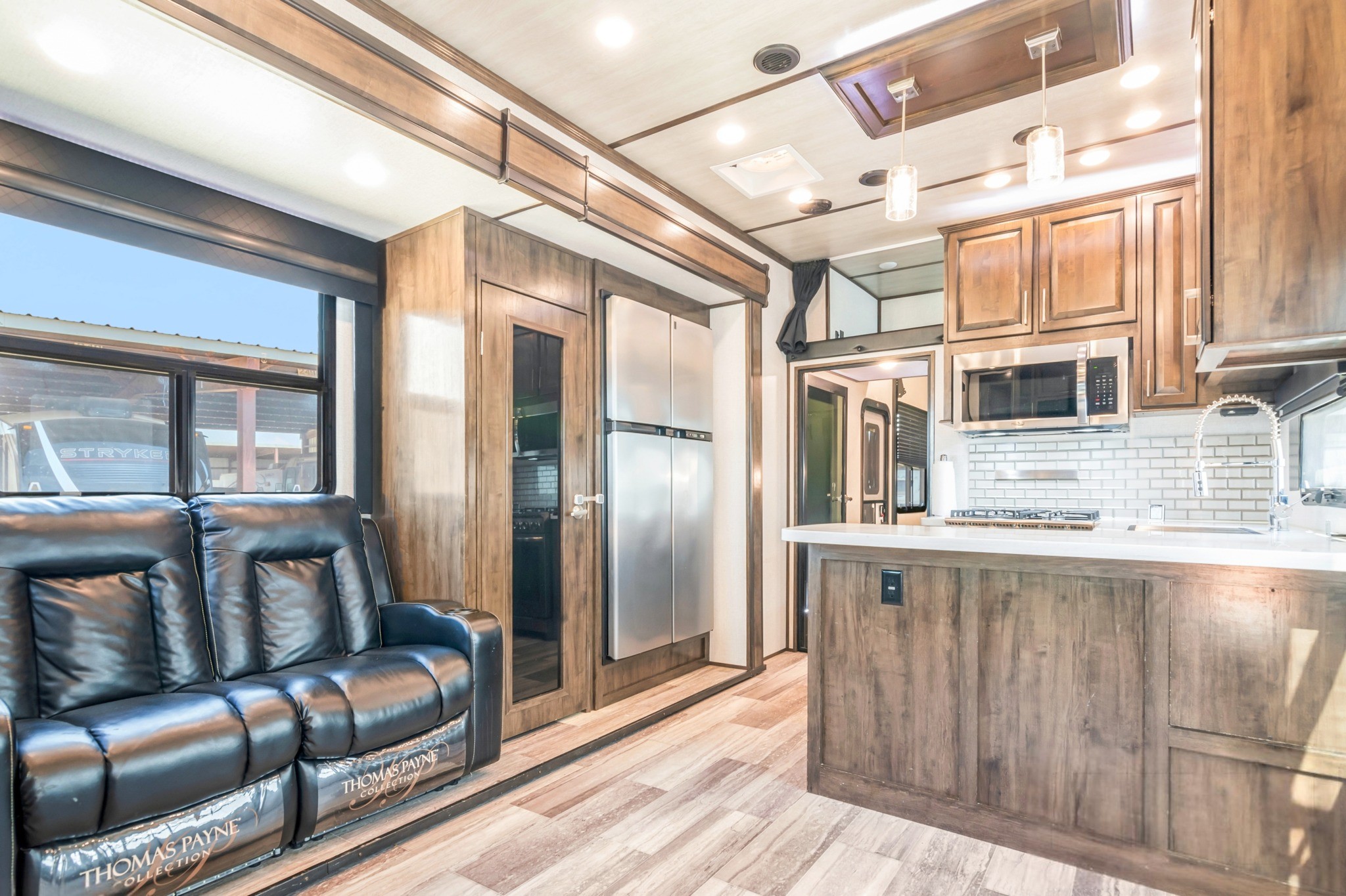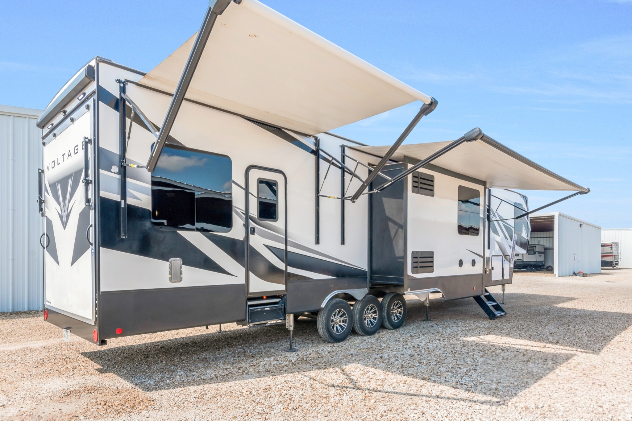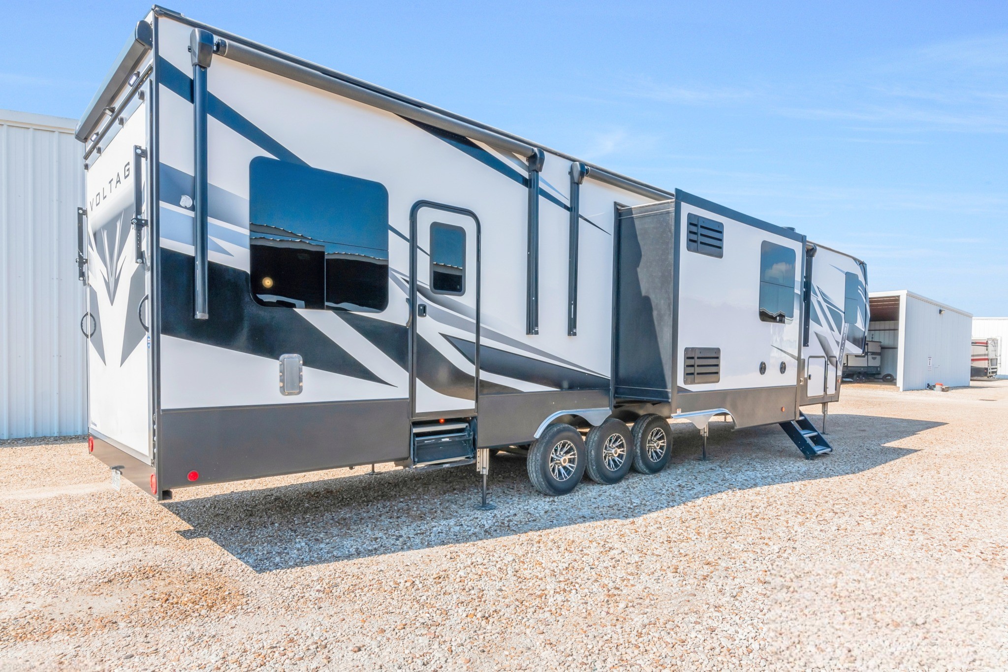 This 2021 Dutchmen Voltage 4225 delivers a perfect combination of style, storage, and strength for those who want a toy hauler that feels like a luxury home on wheels.