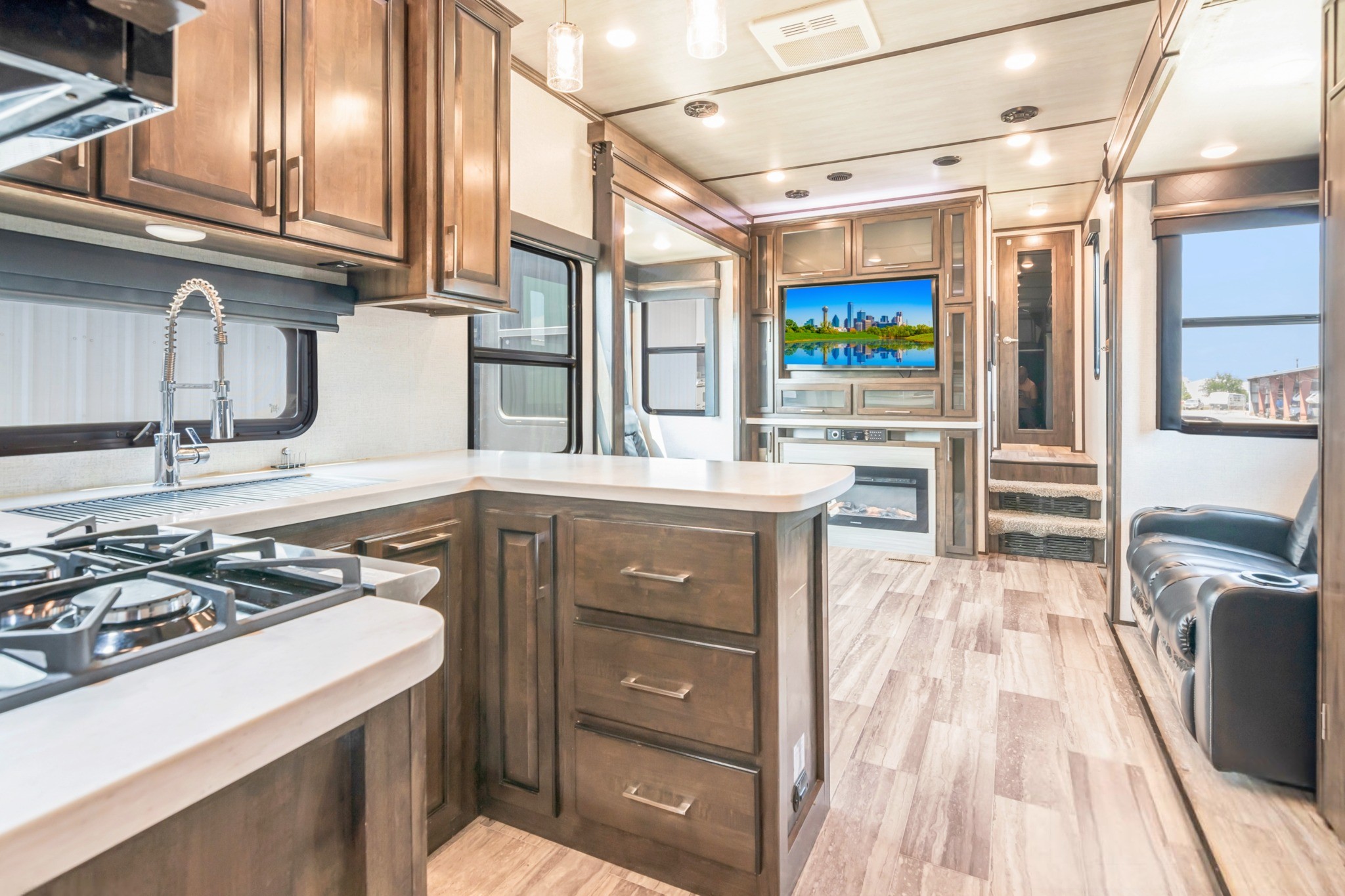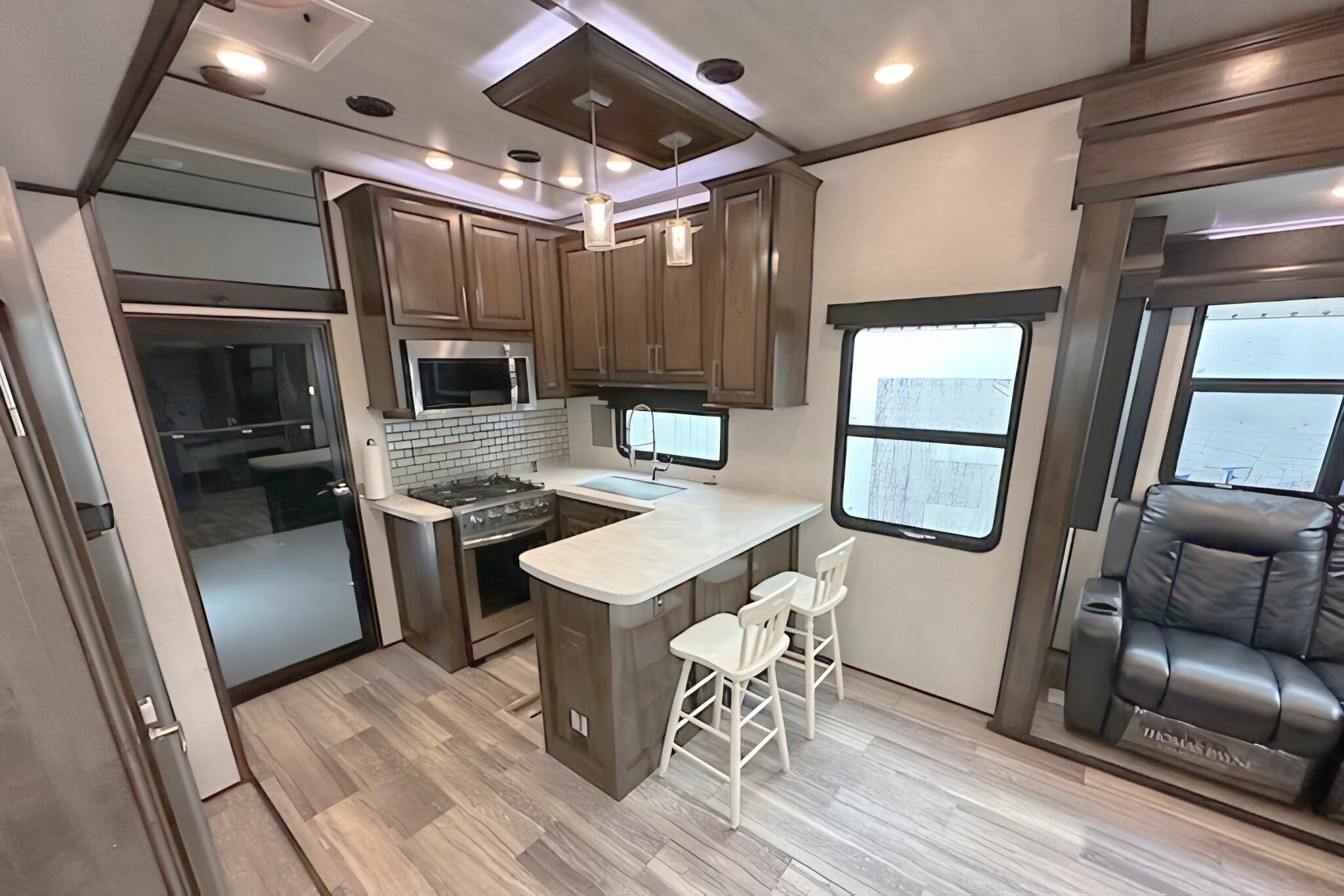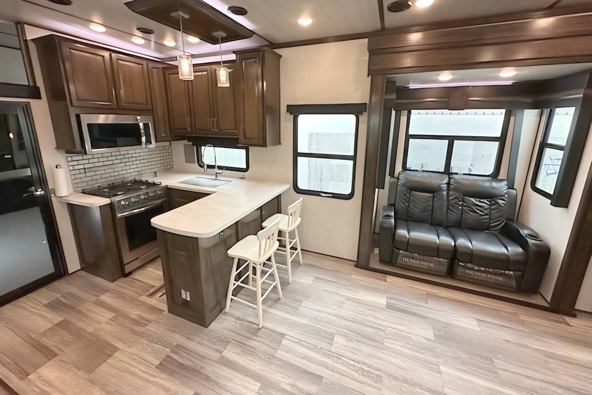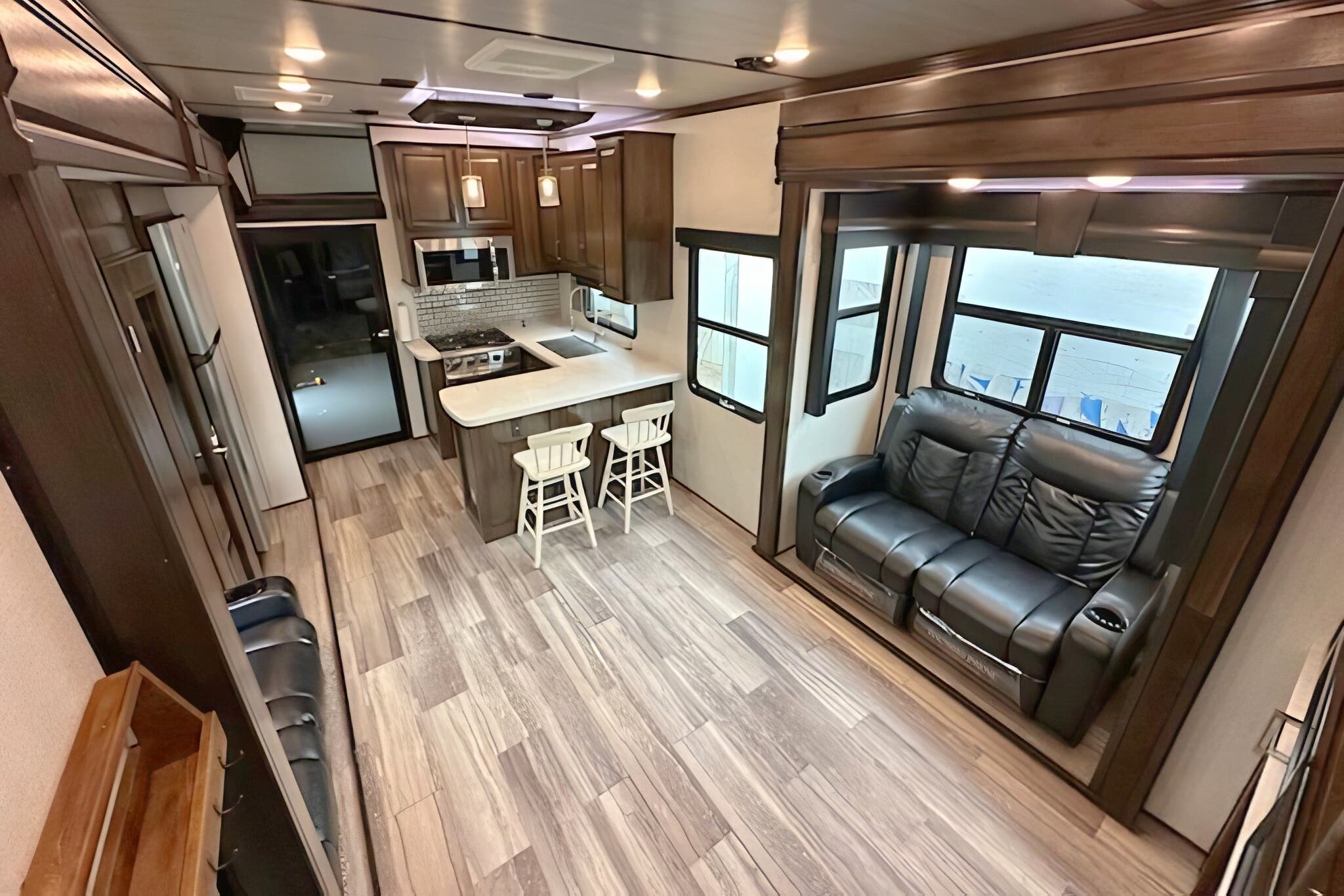 This 2021 Dutchmen Voltage 4225 delivers a perfect combination of style, storage, and strength for those who want a toy hauler that feels like a luxury home on wheels.