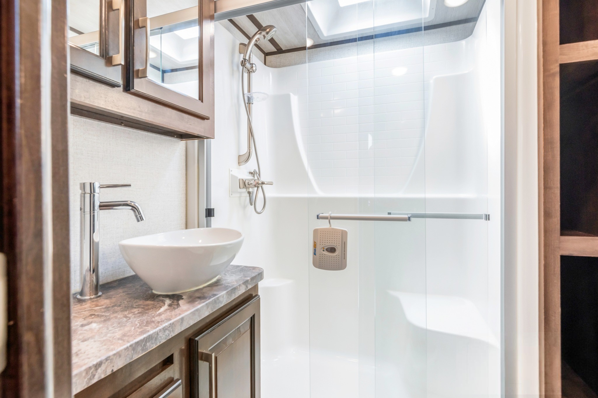 One-Piece Fiberglass Shower – Residential-style bath that’s easy to clean and built to last.