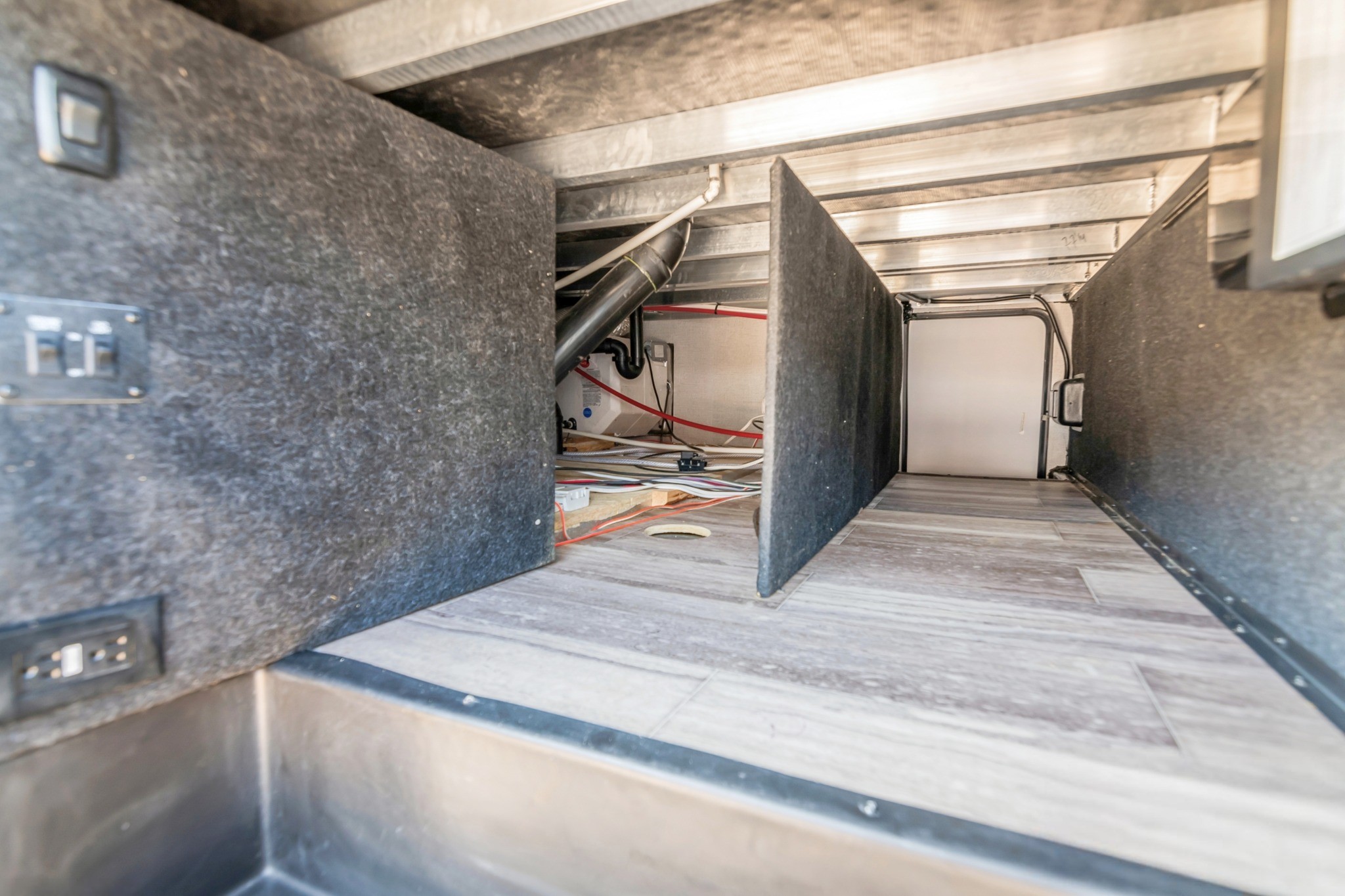 12’6” Garage with 2,500-lb Tie Downs – Securely transport heavy toys without shifting in transit.
