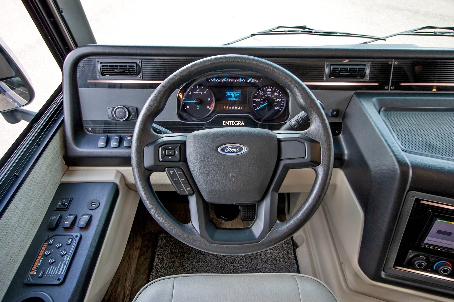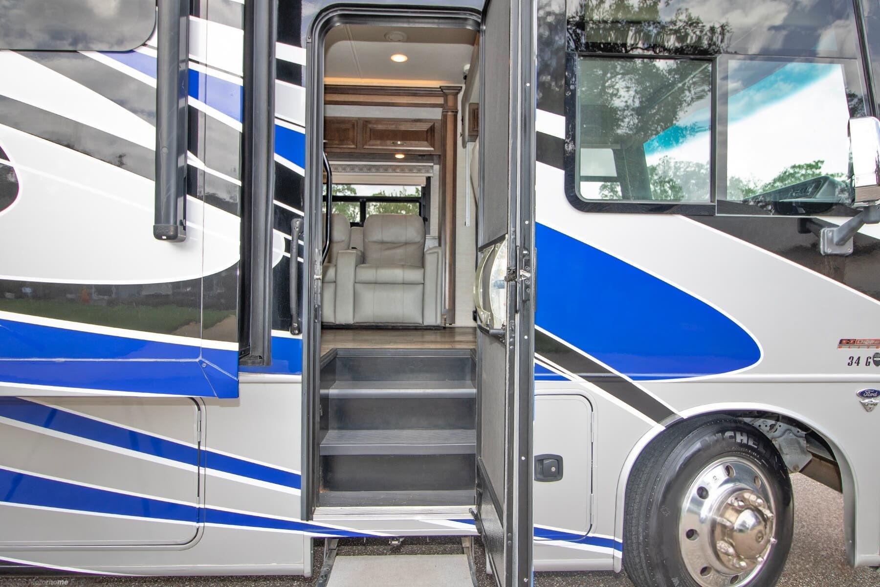 This 2020 Entegra Vision XL 34G combines Entegra’s signature build quality with residential luxury and road-ready confidence. Built on the Ford® F53 chassis and powered by the robust 7.3L V8 gas engine (350 HP, 468 lb.-ft. torque), this coach delivers the perfect blend of comfort, capability, and style. With its Crossville interior décor, Sapphire full-body paint package, and Entegra’s exclusive EZDRIVE™ handling system, this Vision XL is engineered to provide a smooth and refined travel experience for families or couples alike.
