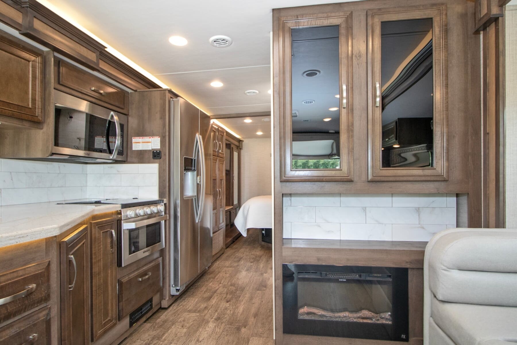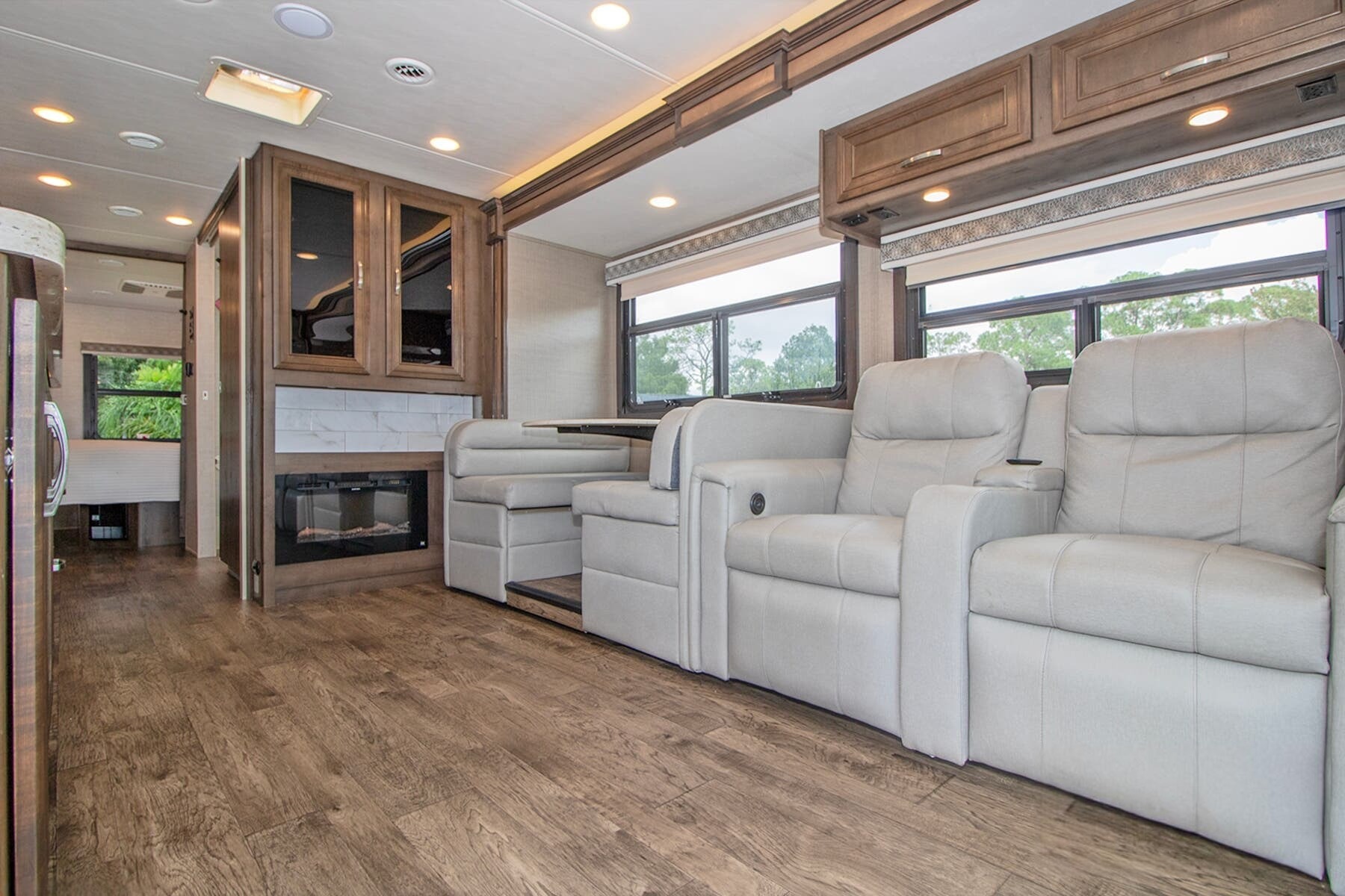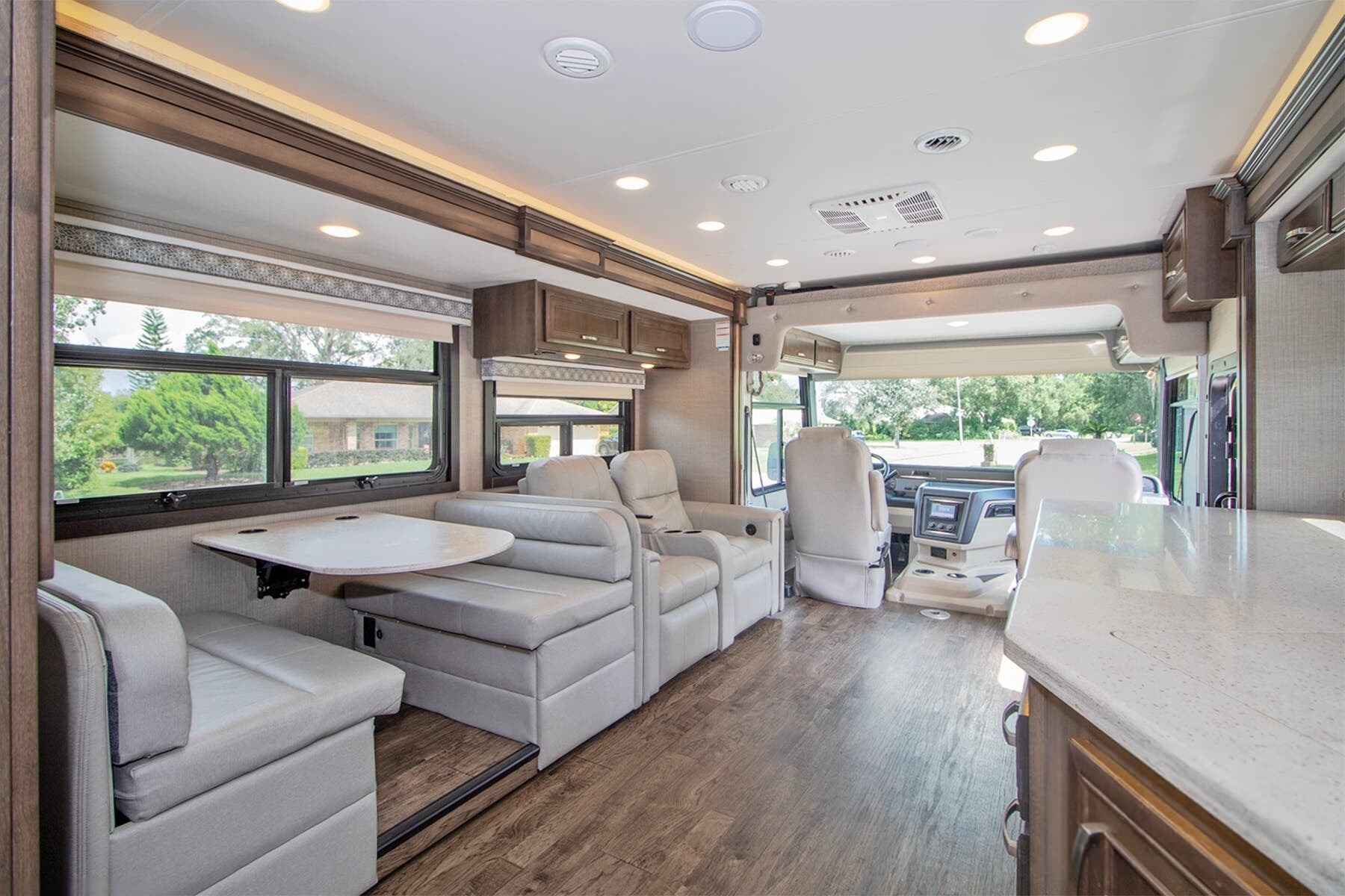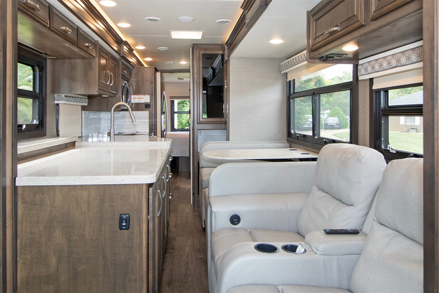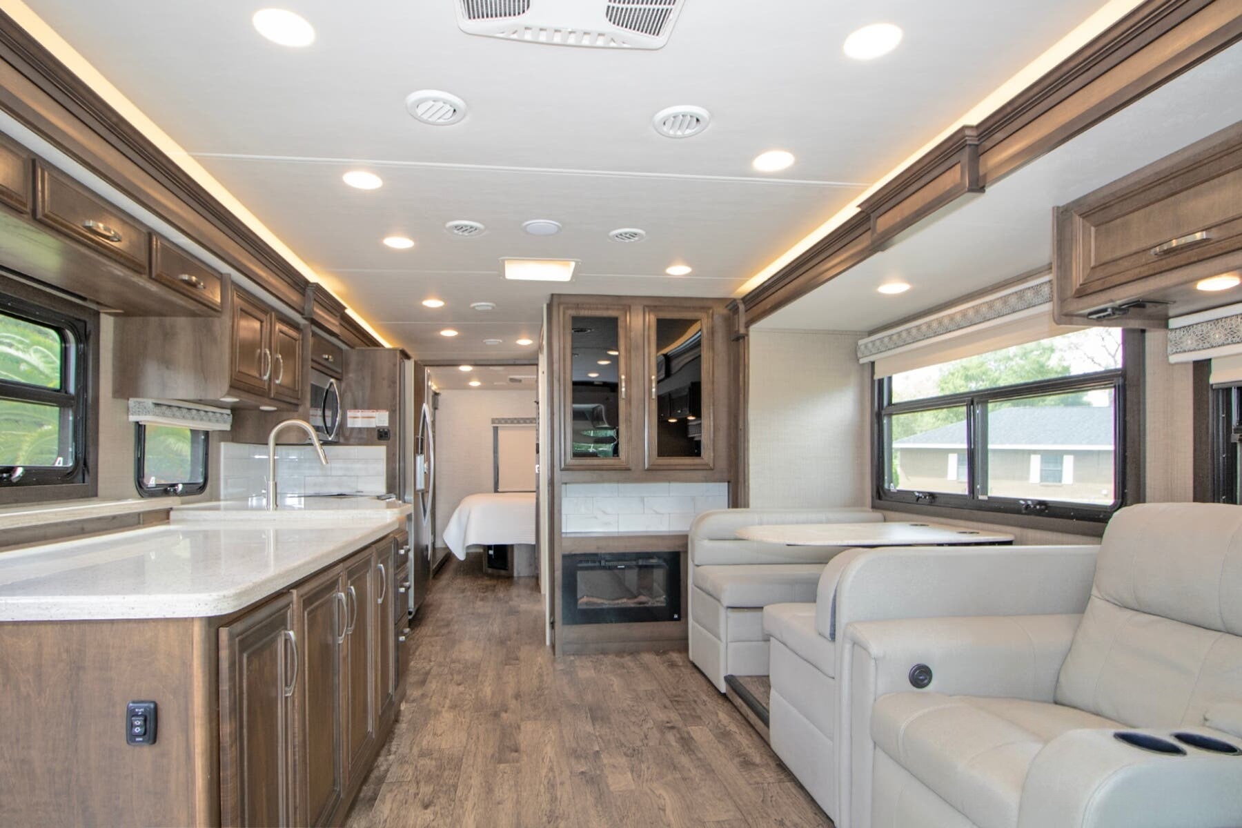 Onan® 5,500W Generator with Auto-Start – Reliable power wherever you park, backed by a 50-amp electrical service and 1,200W inverter.