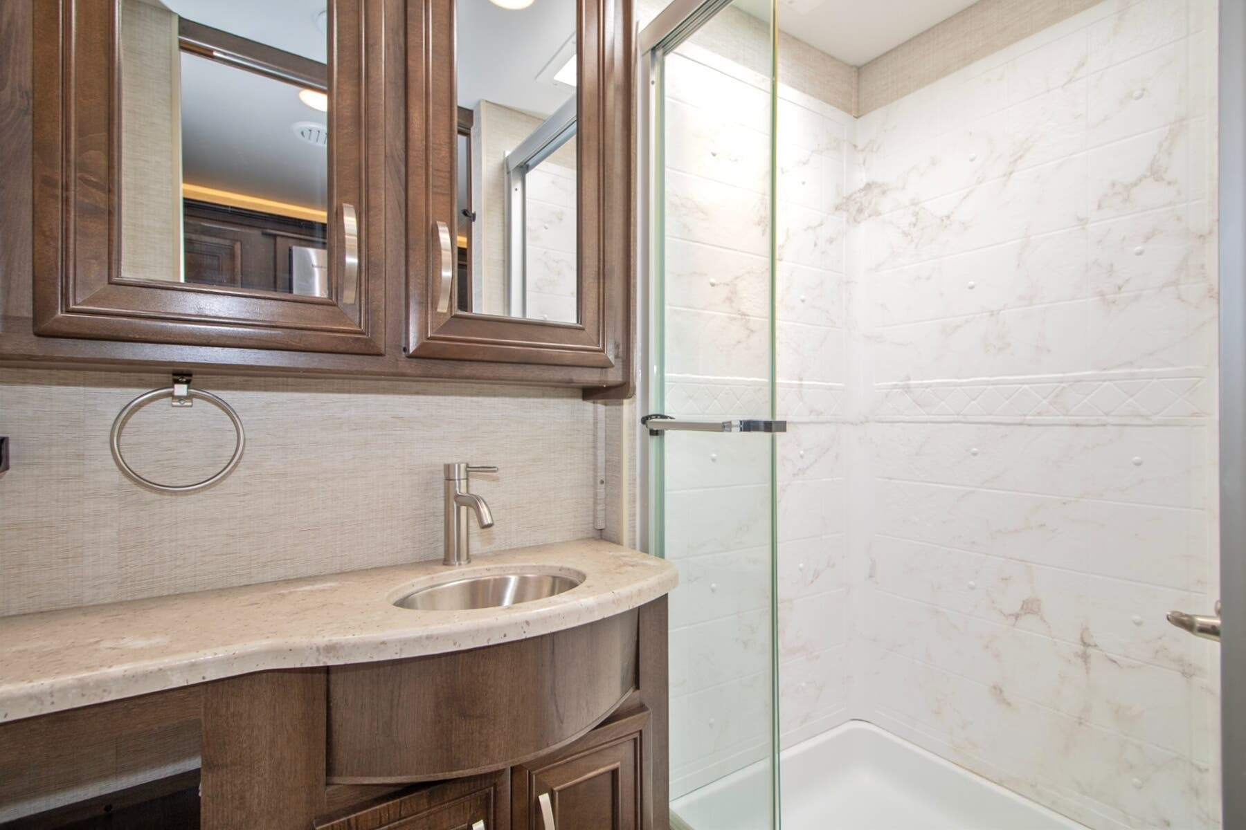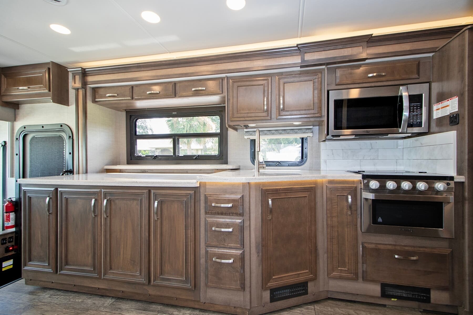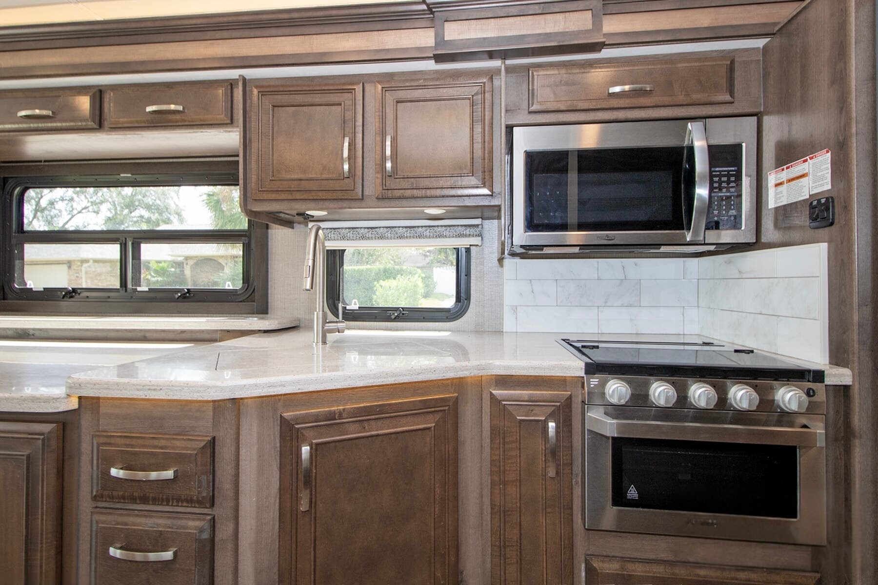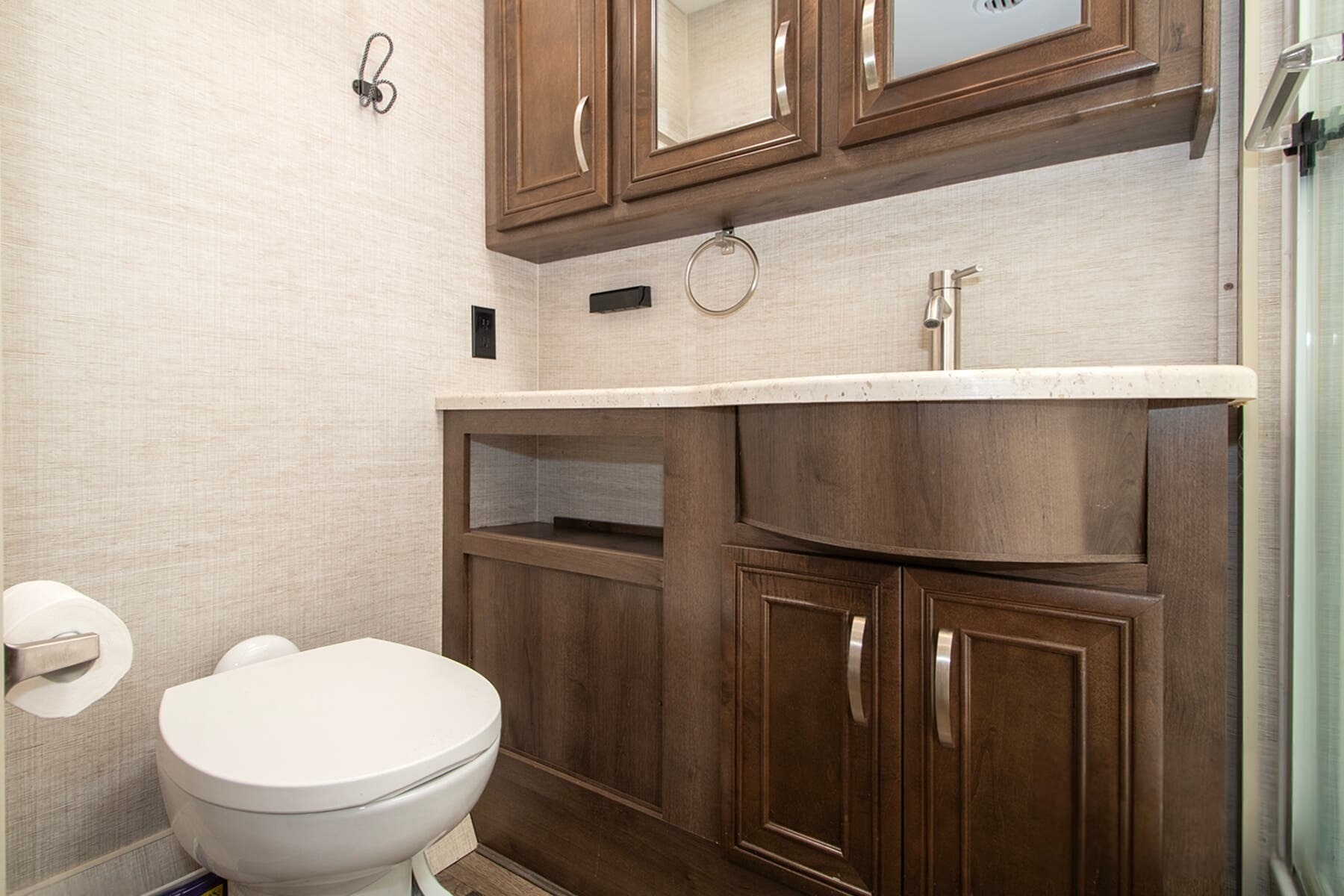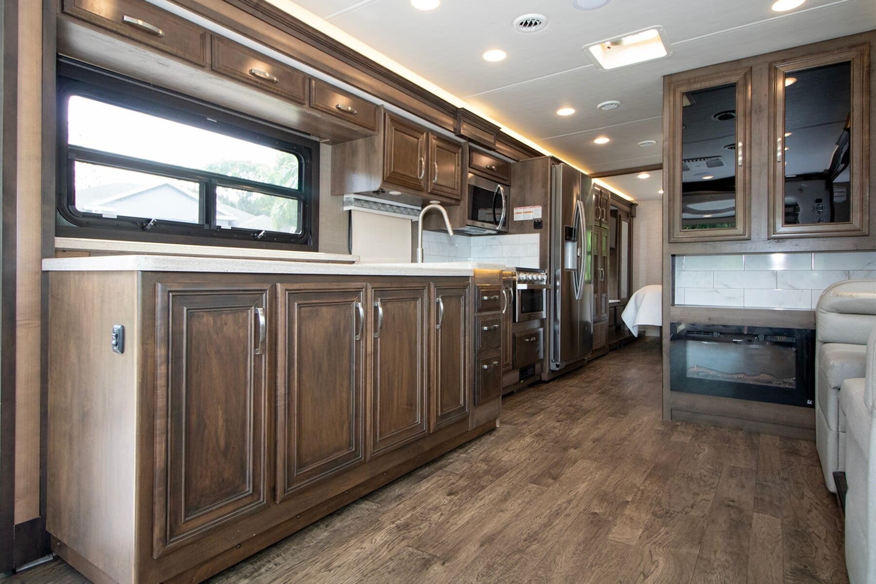 Onan® 5,500W Generator with Auto-Start – Reliable power wherever you park, backed by a 50-amp electrical service and 1,200W inverter.