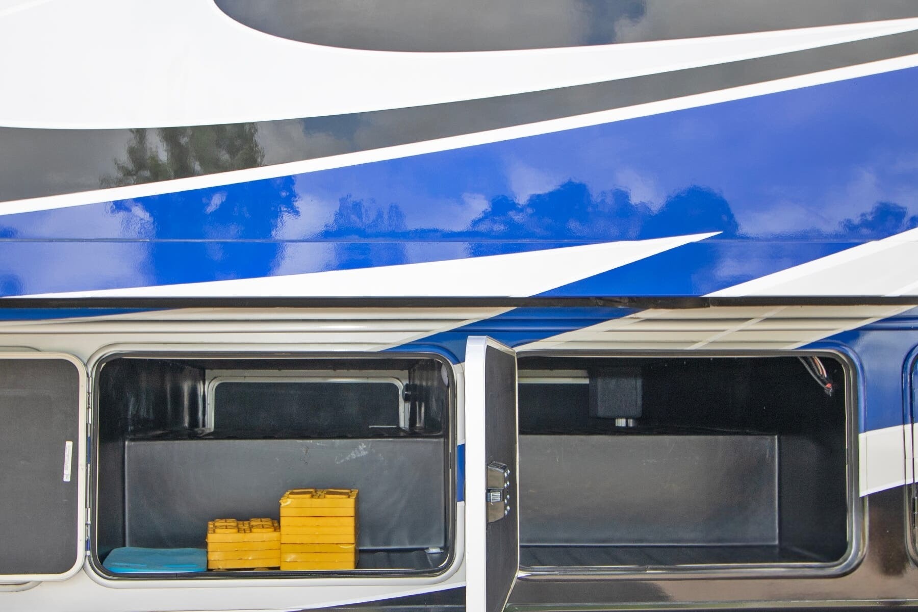 Pass-Through Lockable Storage – Slam-latch compartments and heated holding tanks with 12V pads ensure easy access and year-round usability.