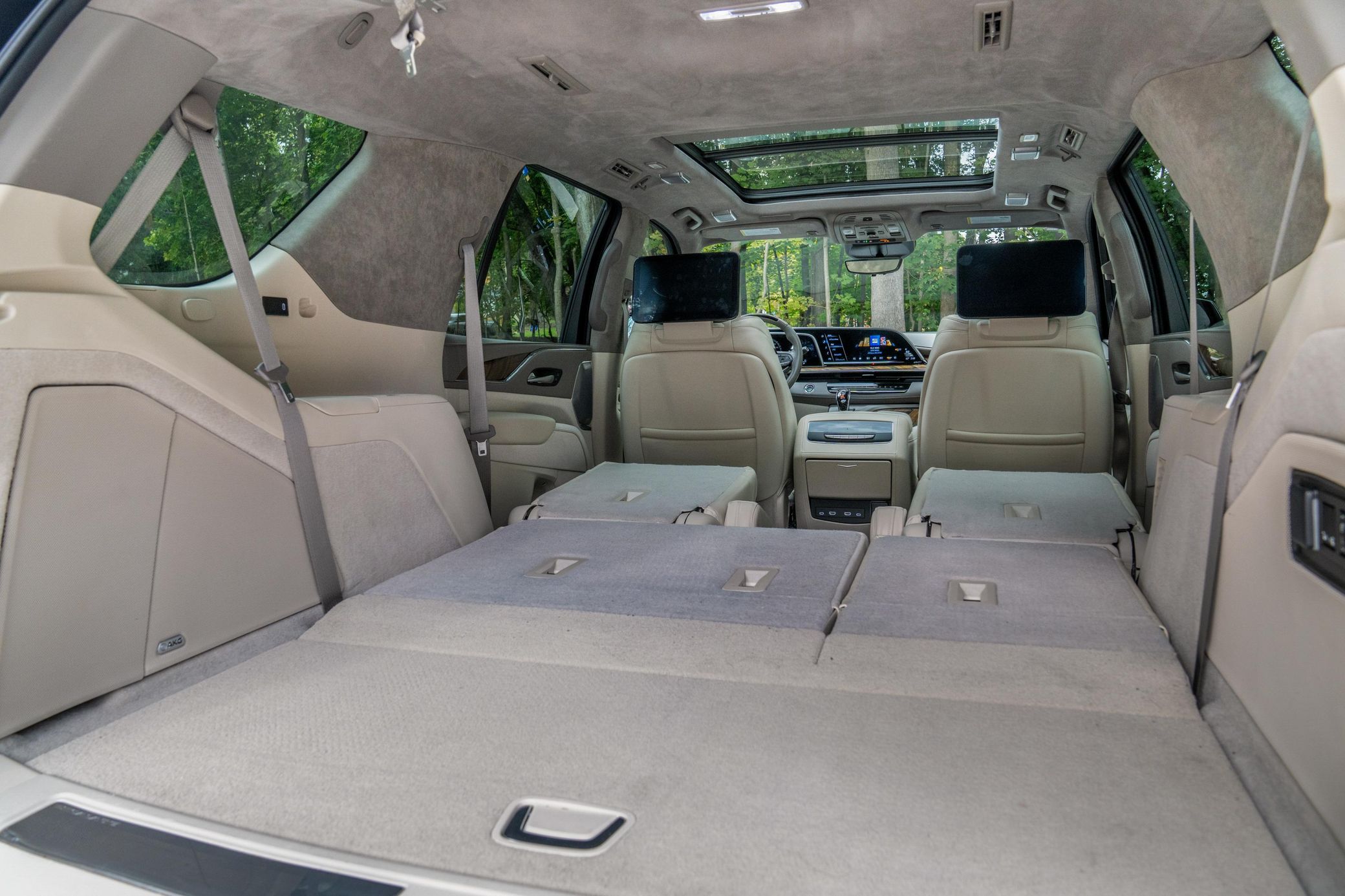 22-inch wheels, Magnetic Ride Control, a panoramic sunroof, heated and ventilated front seats, folding third-row seats, and an AKG sound system. The SUV offers a more spacious interior (particularly for the second- and third-row passengers), more technology features including the Super Cruise semi-autonomous driving system, and better performance.