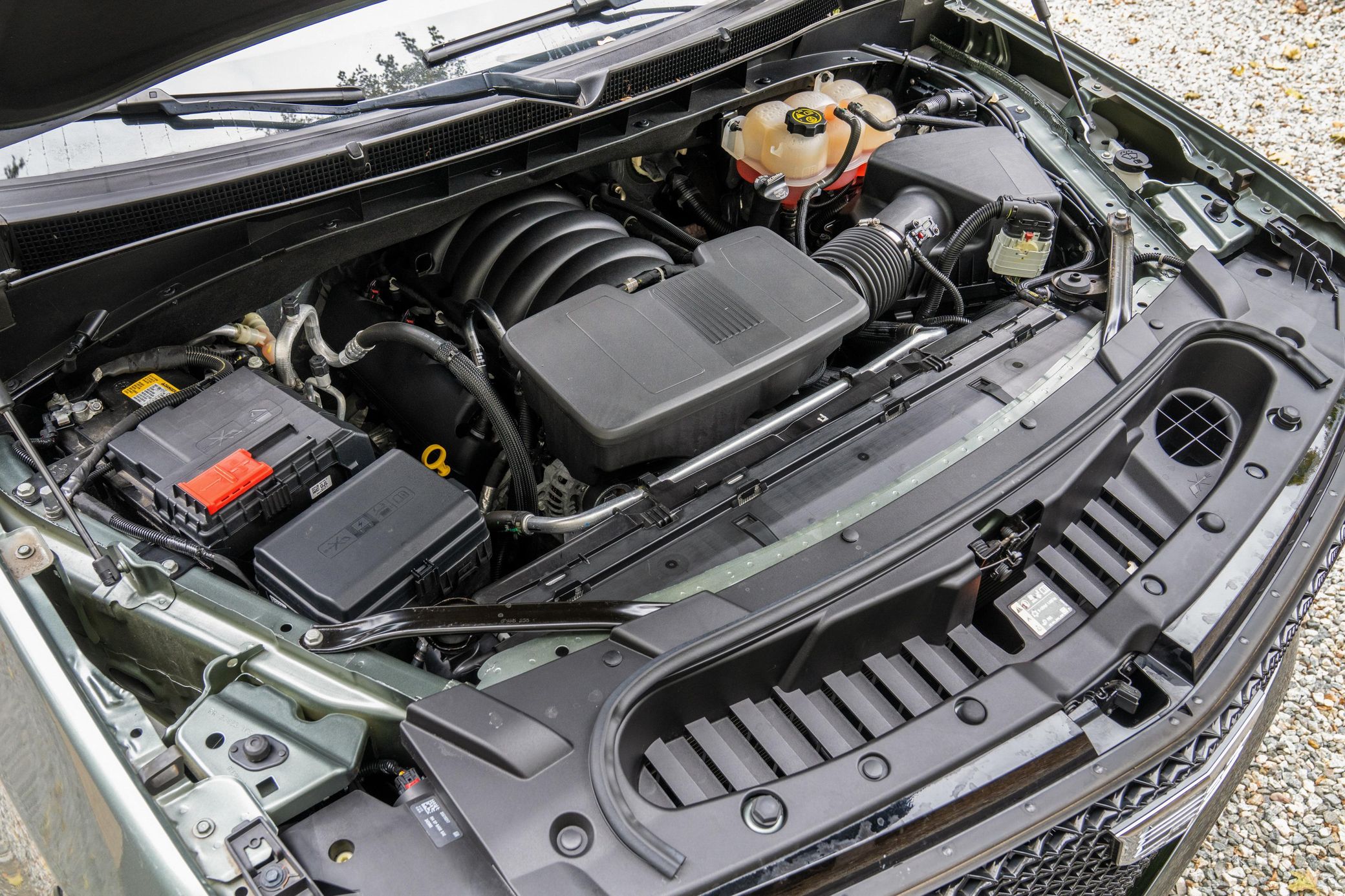 Power comes from a 6.2-liter V8, rated at 420 horsepower and 460 lb-ft of torque. Output is sent to the rear or the four wheels via a 10-speed automatic transmission and a 2-speed transfer case.