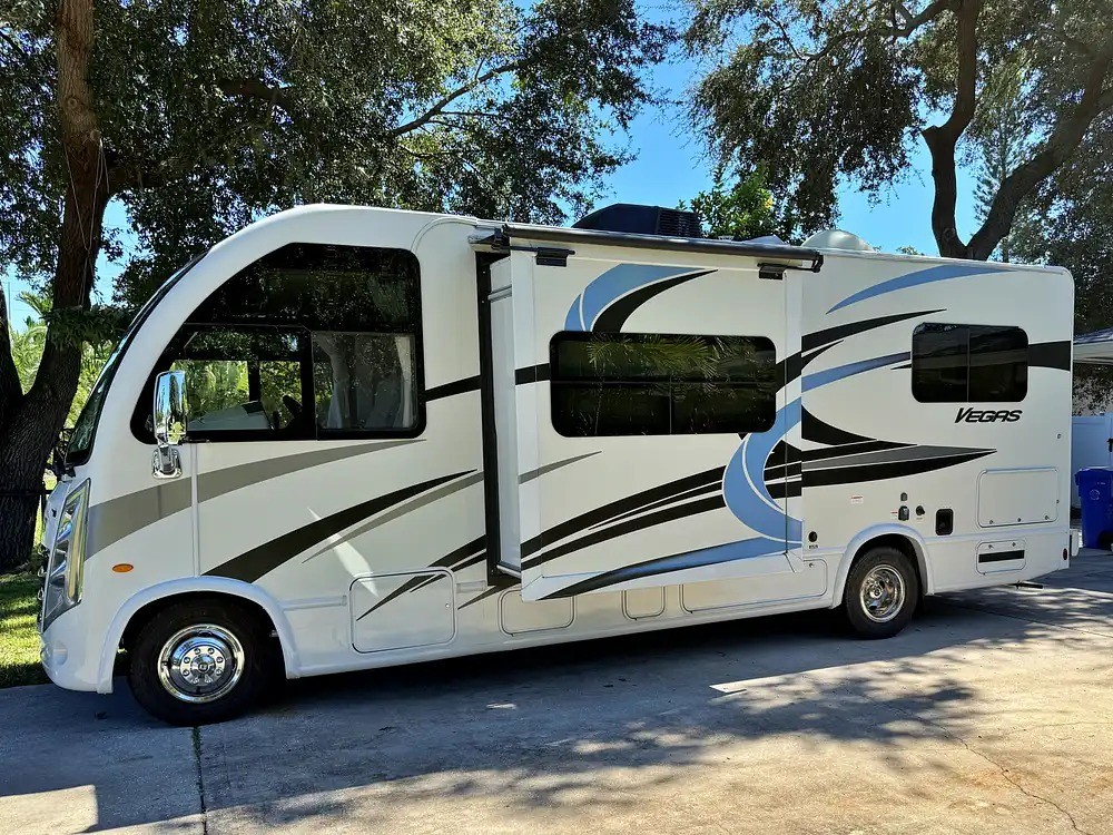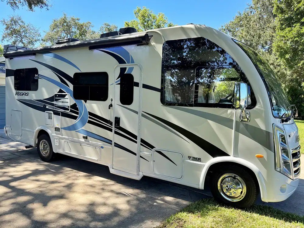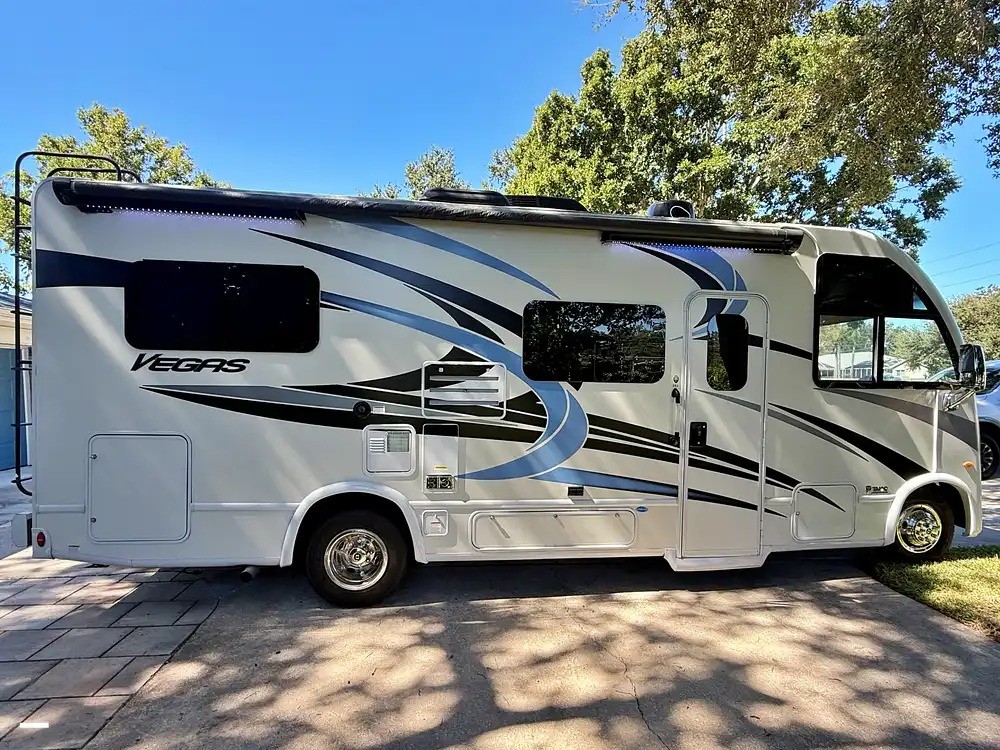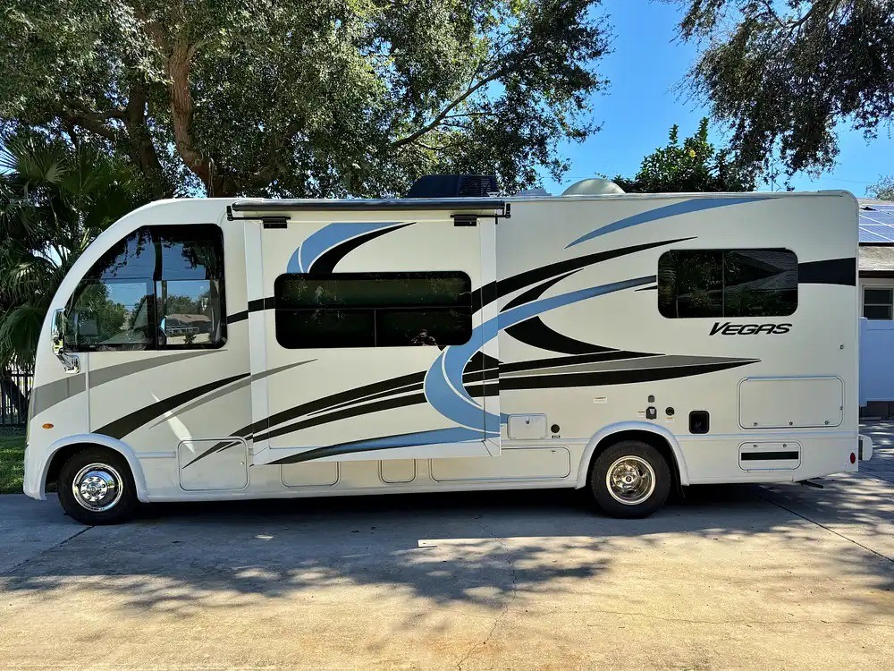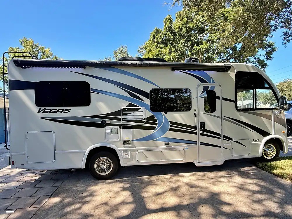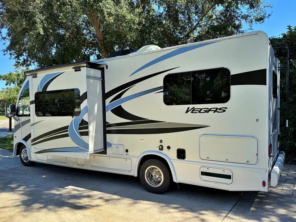 This 2023 Vegas 24.1 blends efficiency, comfort, and modern technology in a manageable size, making it perfect for couples or small families looking to travel in style without sacrificing convenience. It's ready to hit the road for your next adventure.