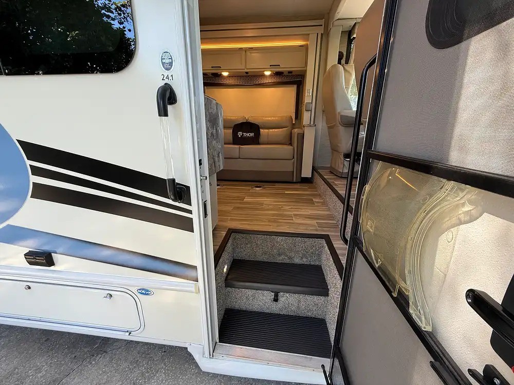 For sale is a 2023 Thor Motor Coach Vegas 24.1 Class A Motorhome. This attractive and efficient coach is lightly used, shows low mileage, and is in very nice condition. Combining the maneuverability of a Class C with the comfort and amenities of a Class A, the Vegas 24.1 offers a smart design that's ideal for both short getaways and extended adventures.
